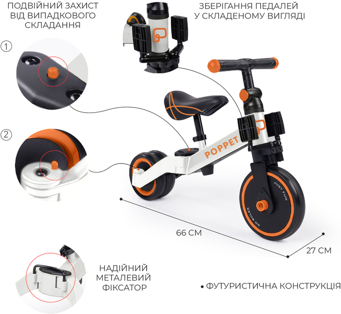 Висновок Біговел 3 в 1 — це безпечний, маневрений і стильний засіб для активного розвитку вашої дитини. для прогулянок на свіжому повітрі!