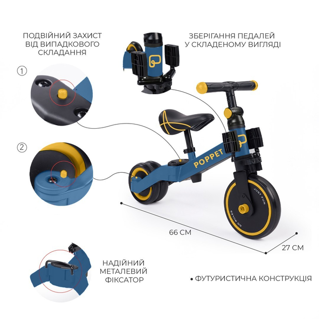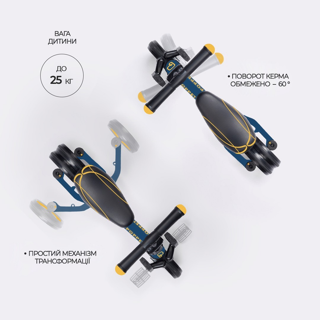 Висновок Біговел 3 в 1 — це безпечний, маневрений і стильний засіб для активного розвитку вашої дитини. Ідеальний для прогулянок на свіжому повітрі!