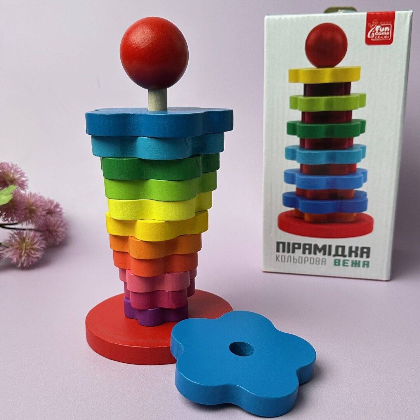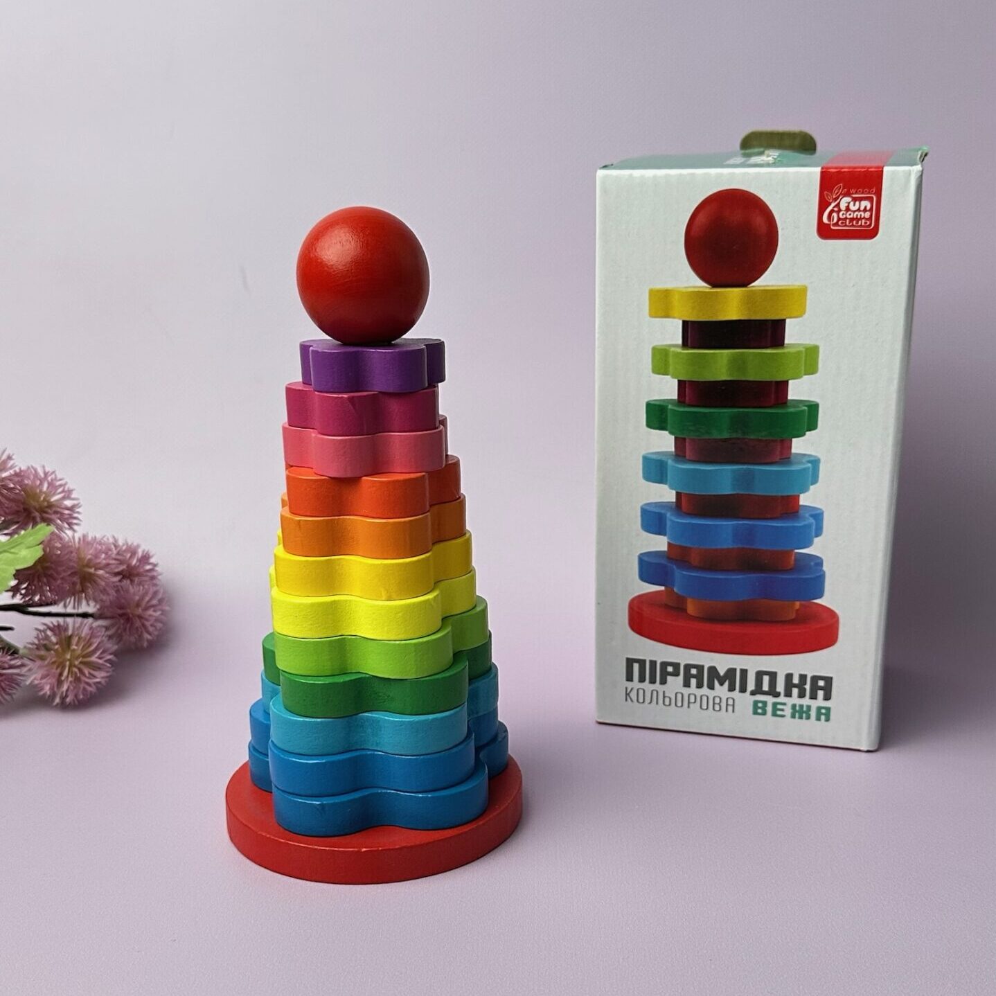 Дерев’яна пірамідка 4FUN Game — яскрава розвивальна іграшка для малюків