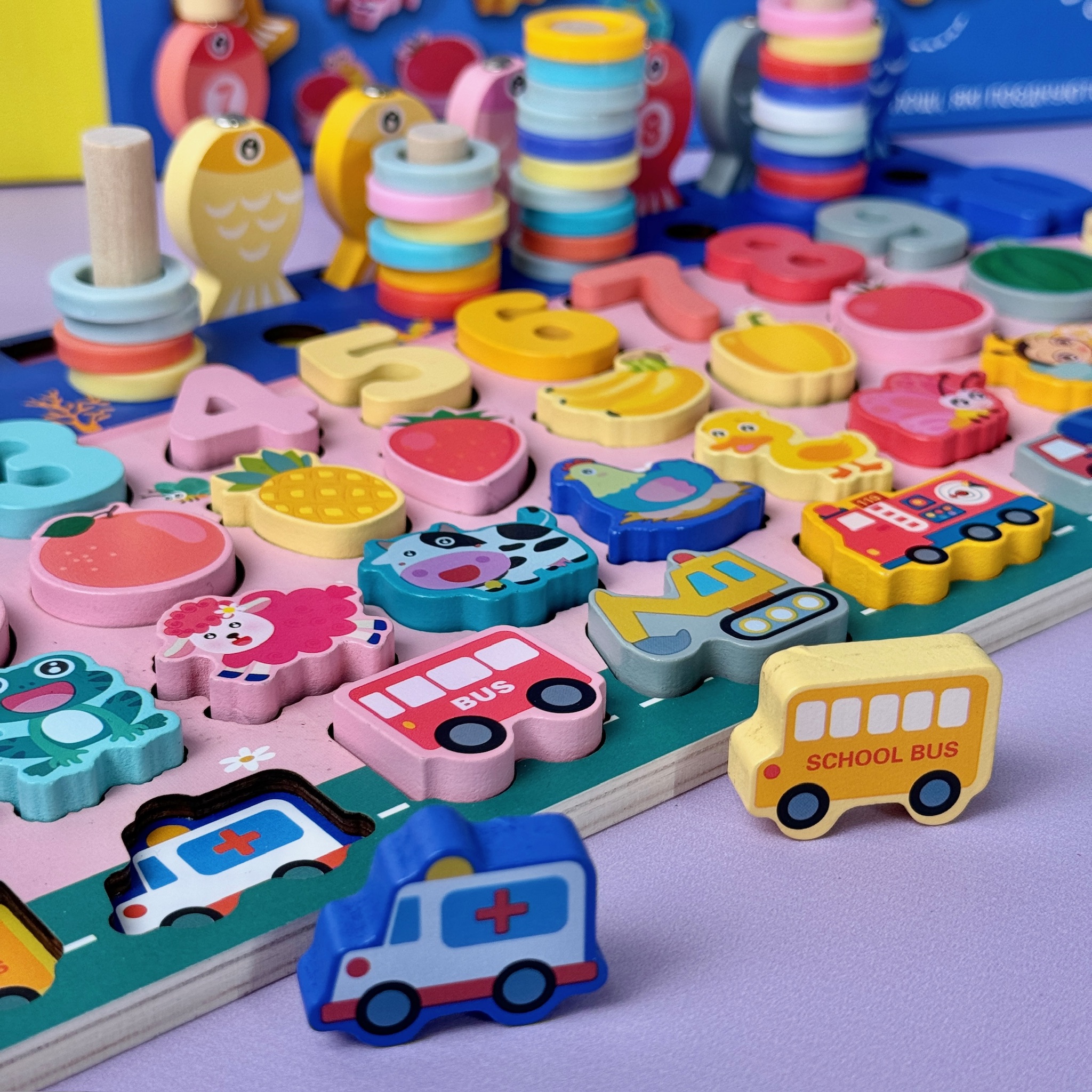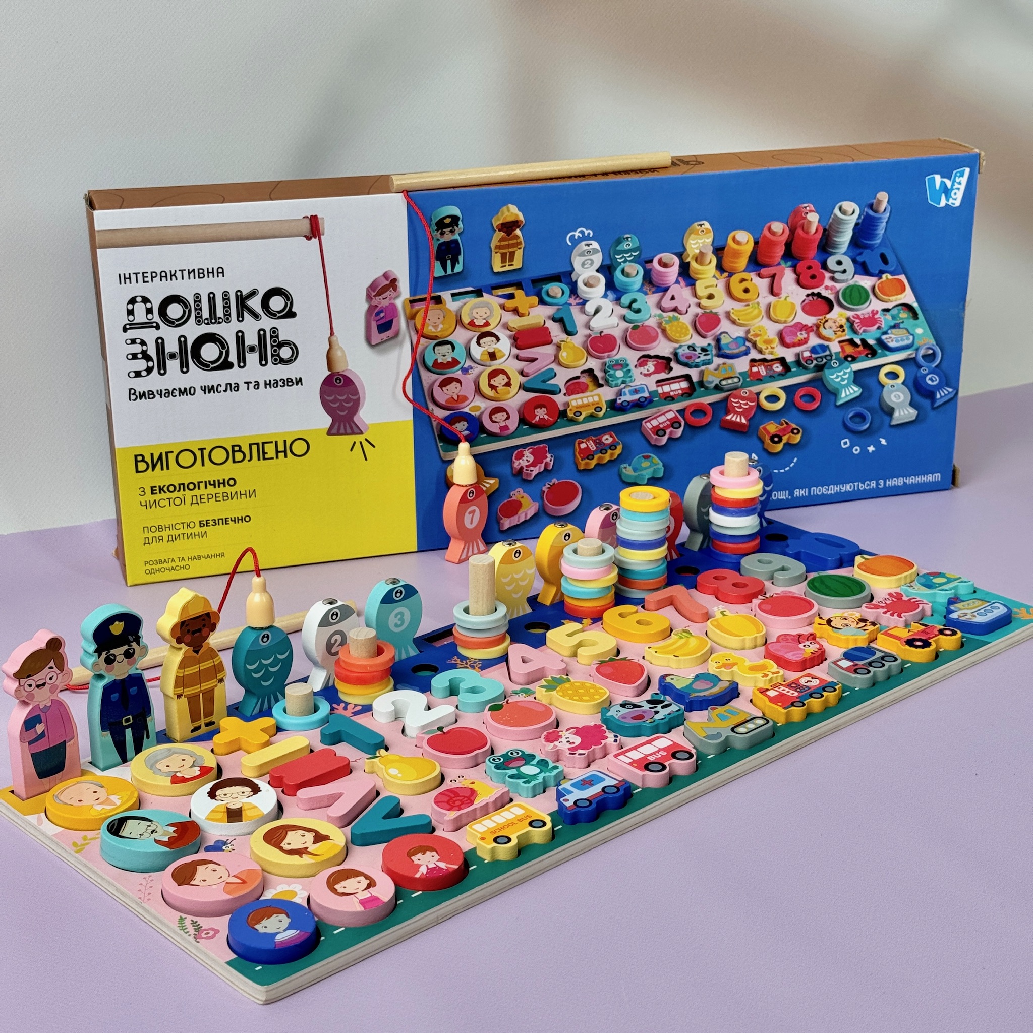 🎓 Інтерактивна розвивальна дошка WToys 7в1 — це універсальна дерев’яна гра, яка поєднує навчання та розваги в одному наборі! Вона стане чудовим помічником у розвитку логіки, уяви, моторики та мовлення дитини.