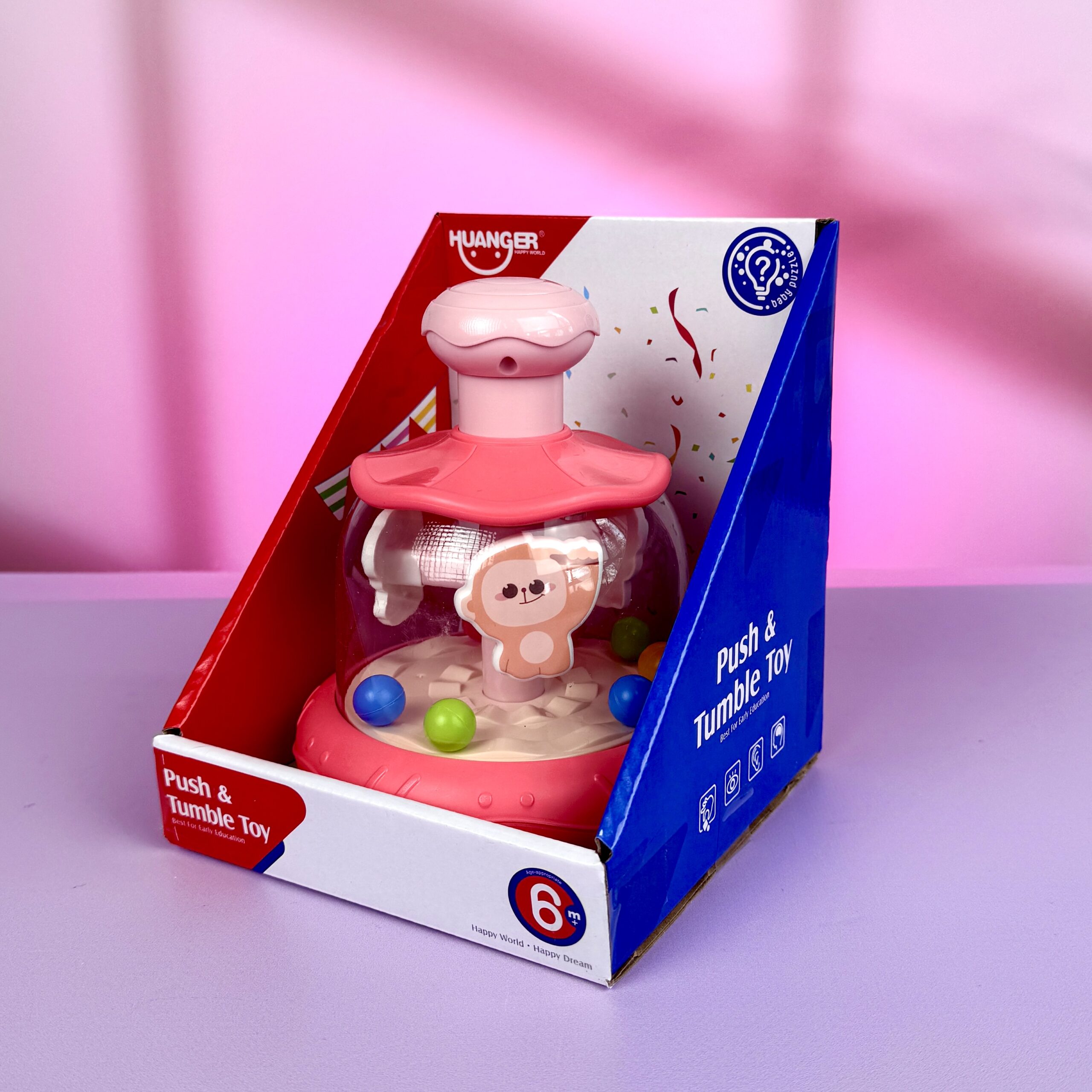Дитяча дзига HE 8091 – яскрава оберталка з кульками (рожевий колір)