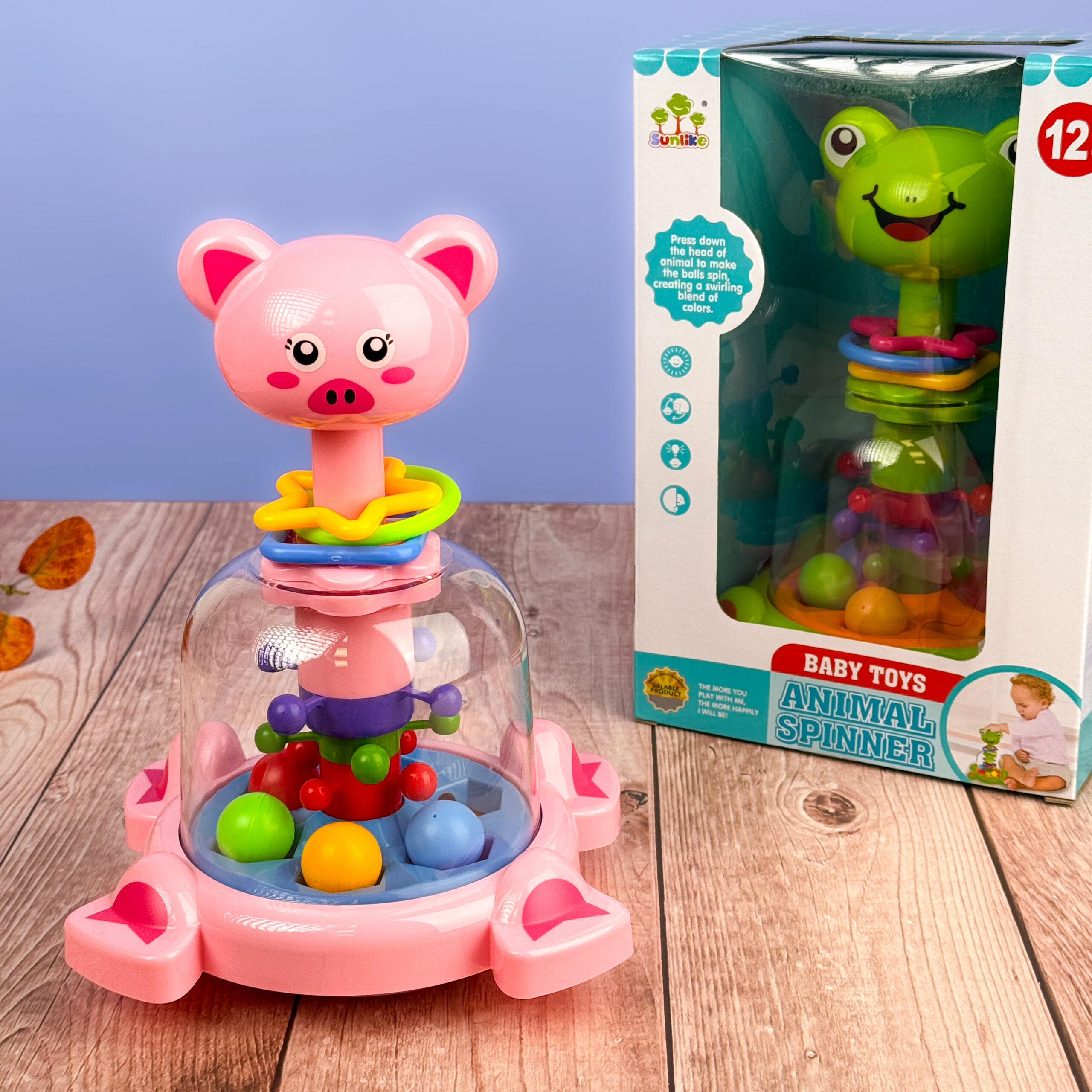 Розвиваюча іграшка Дзиґа виконана у вигляді кумедних тварин.