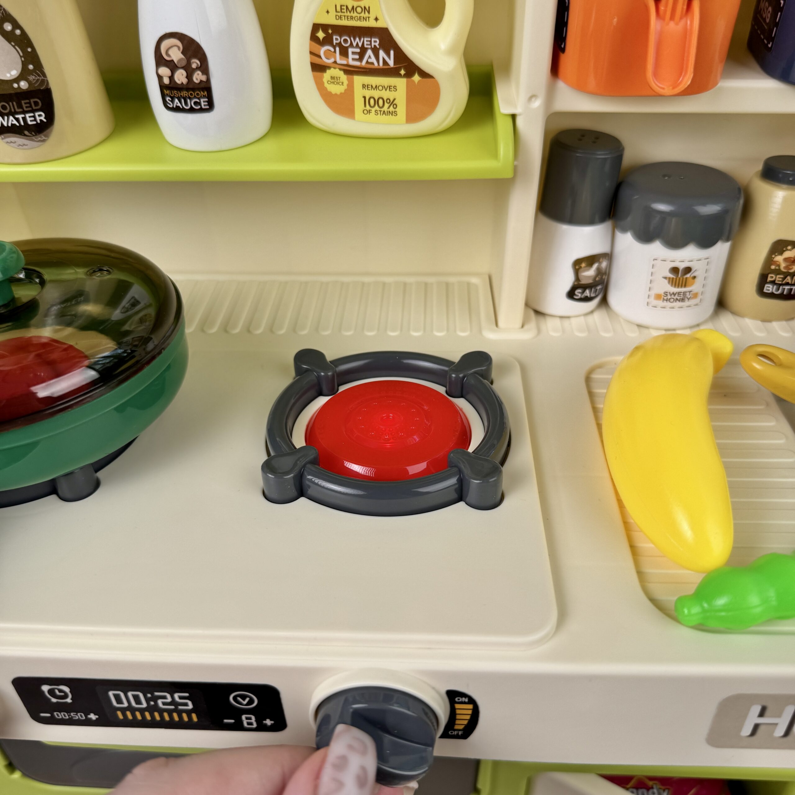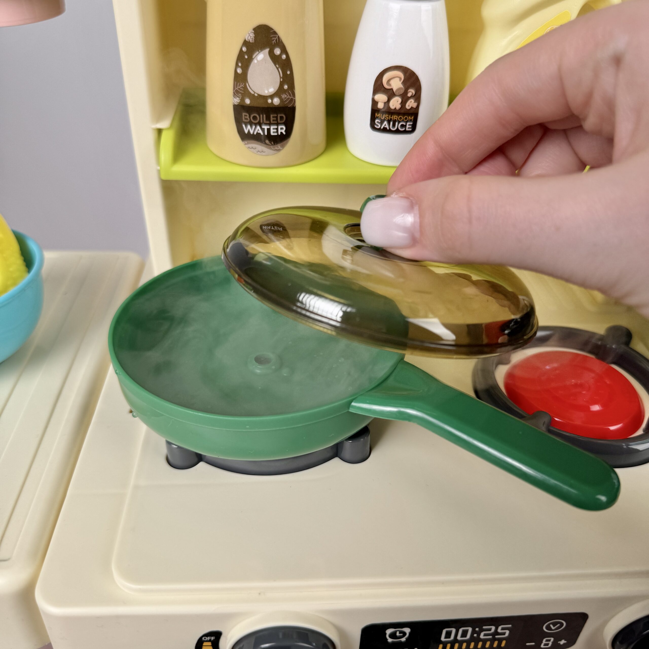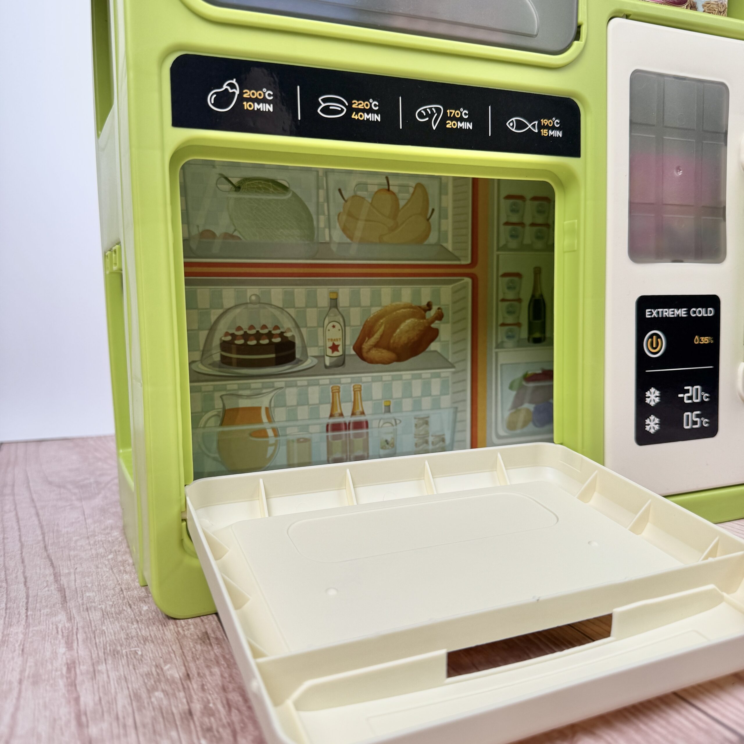 Кухня оснащена реалістичною функцією подачі води 💧, світловими та звуковими ефектами 🔊✨, що додають грі неймовірної живості. А інтерактивна дошка для написів дозволяє створювати власне меню і розвивати творче мислення.