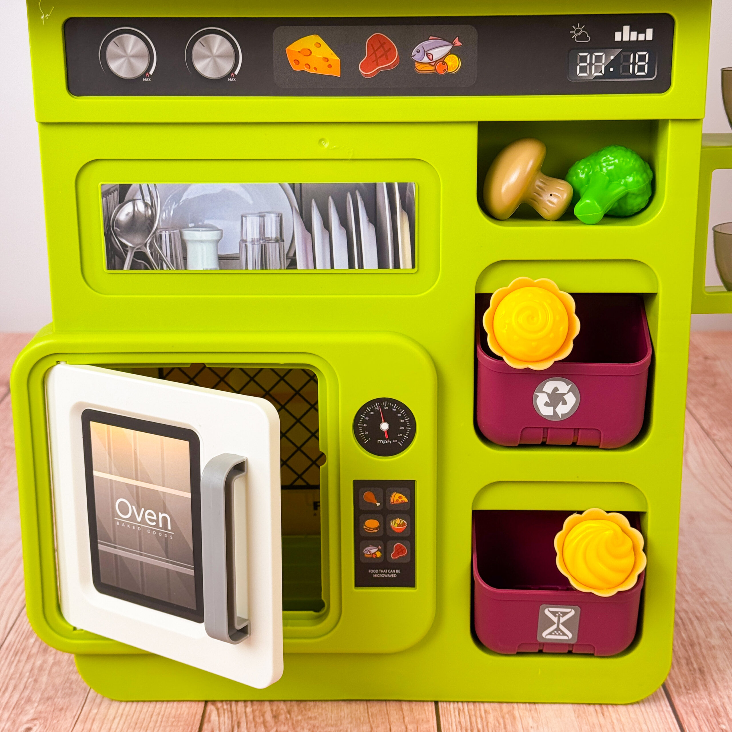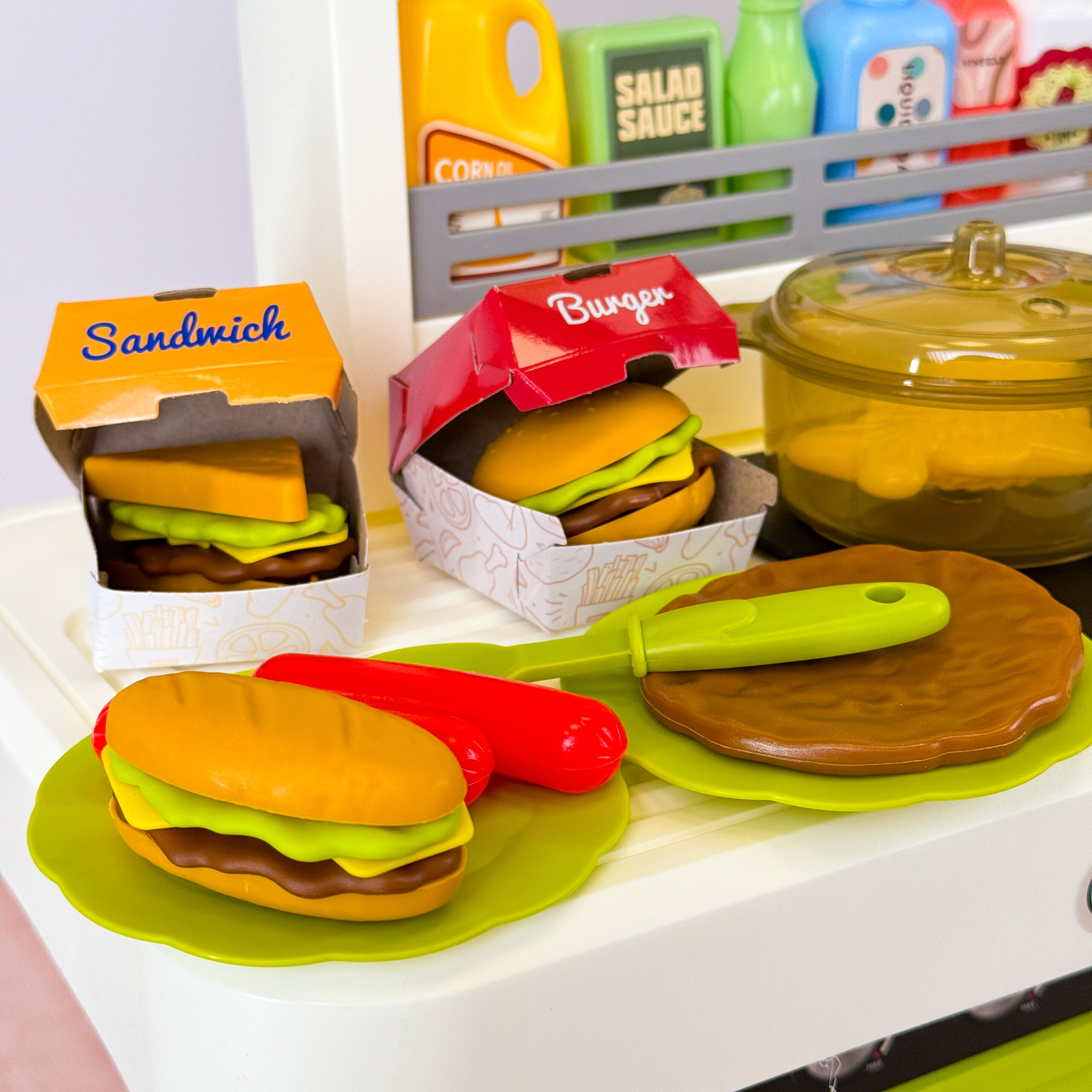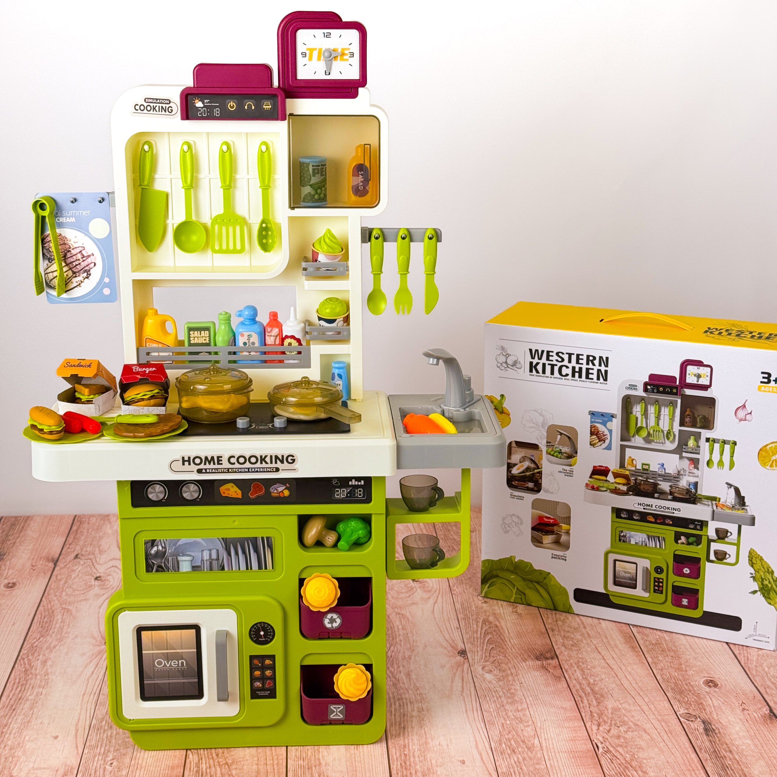 Подаруйте малечі справжню кулінарну пригоду з реалістичною дитячою кухнею «Western Kitchen». Ця стильна й функціональна іграшка об’єднує тренди розвивального геймплея, створюючи сценарії для безмежних кулінарних сюжетів.