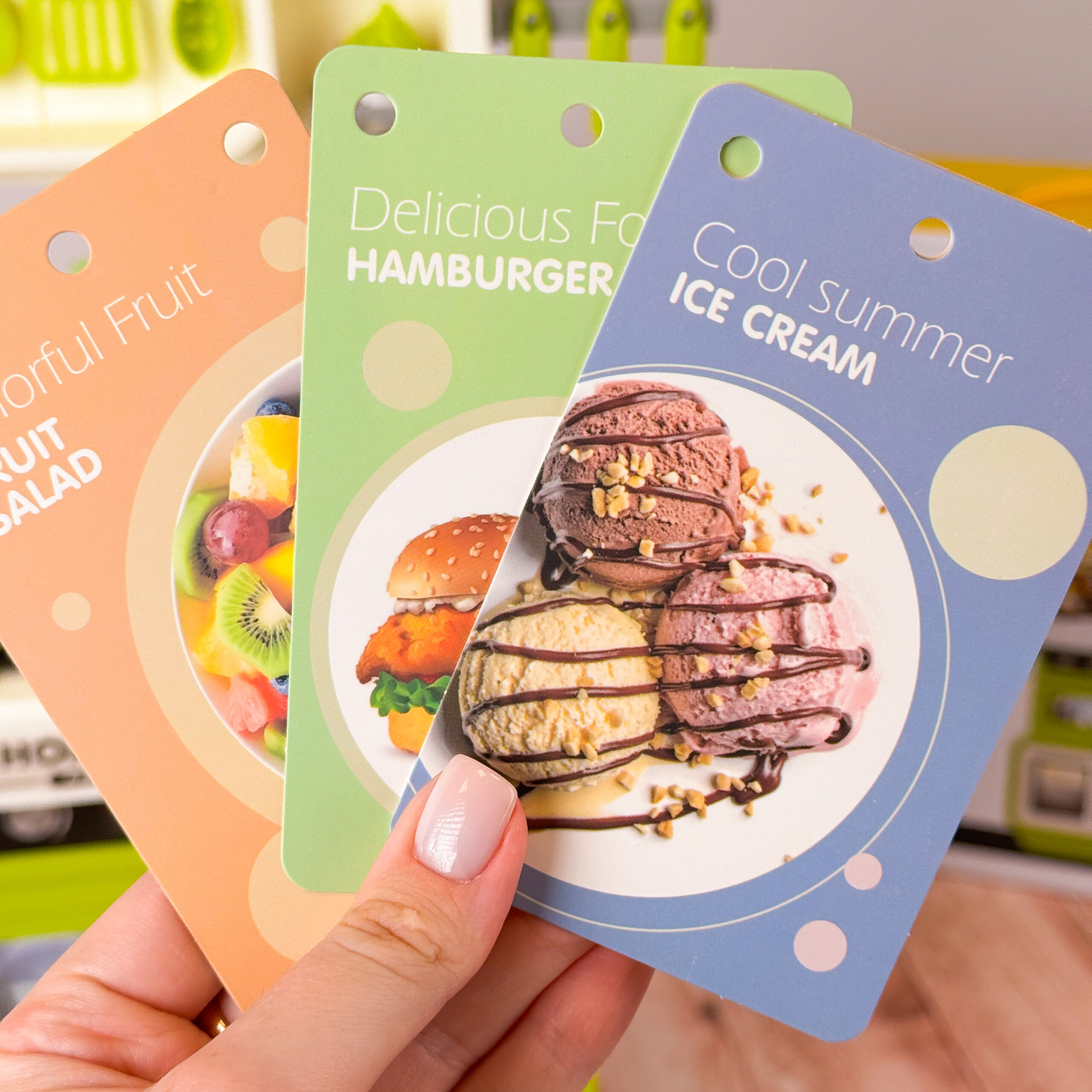• 65 яскравих елементів: каструлі, тарілки, кухонні прилади, продукти й аксесуари;