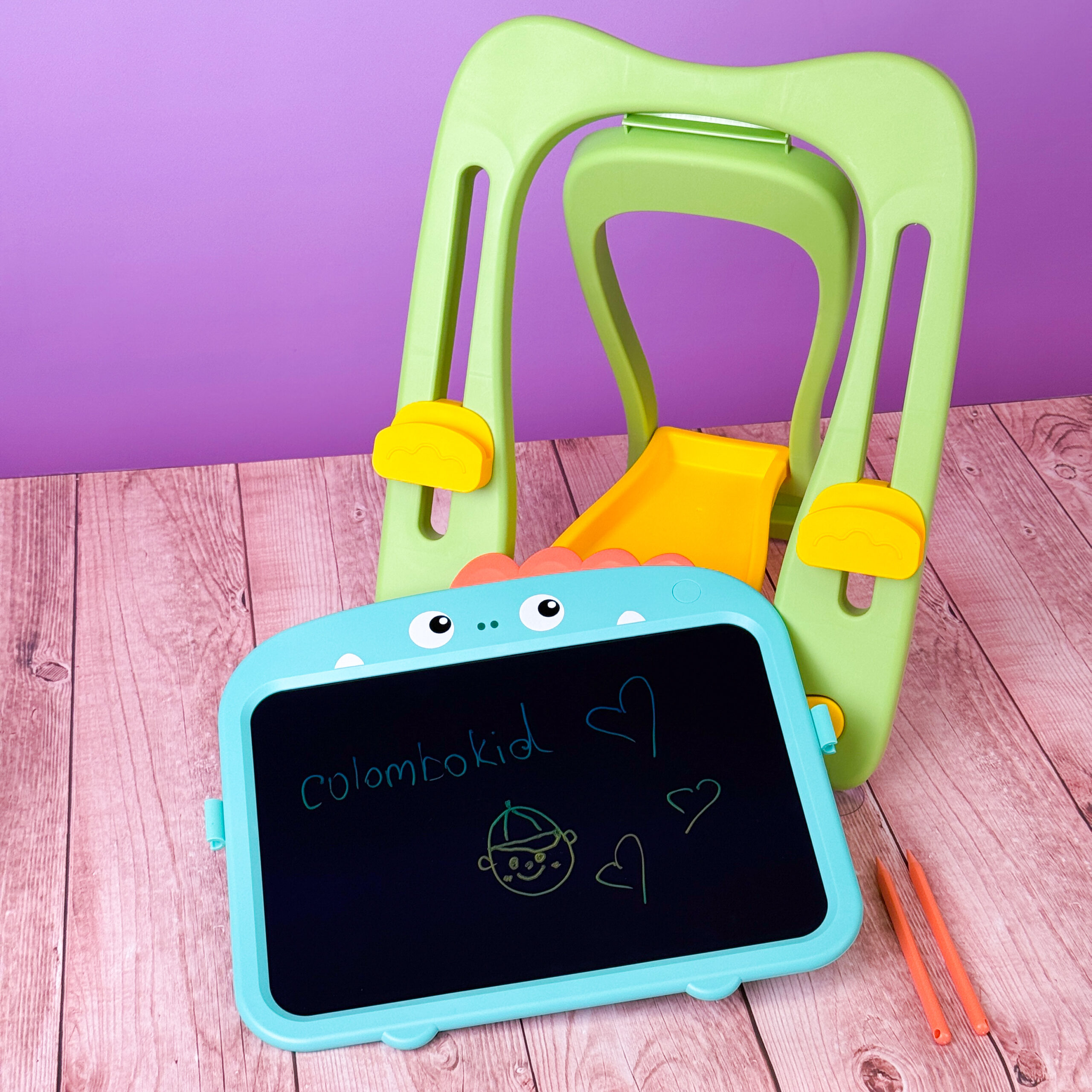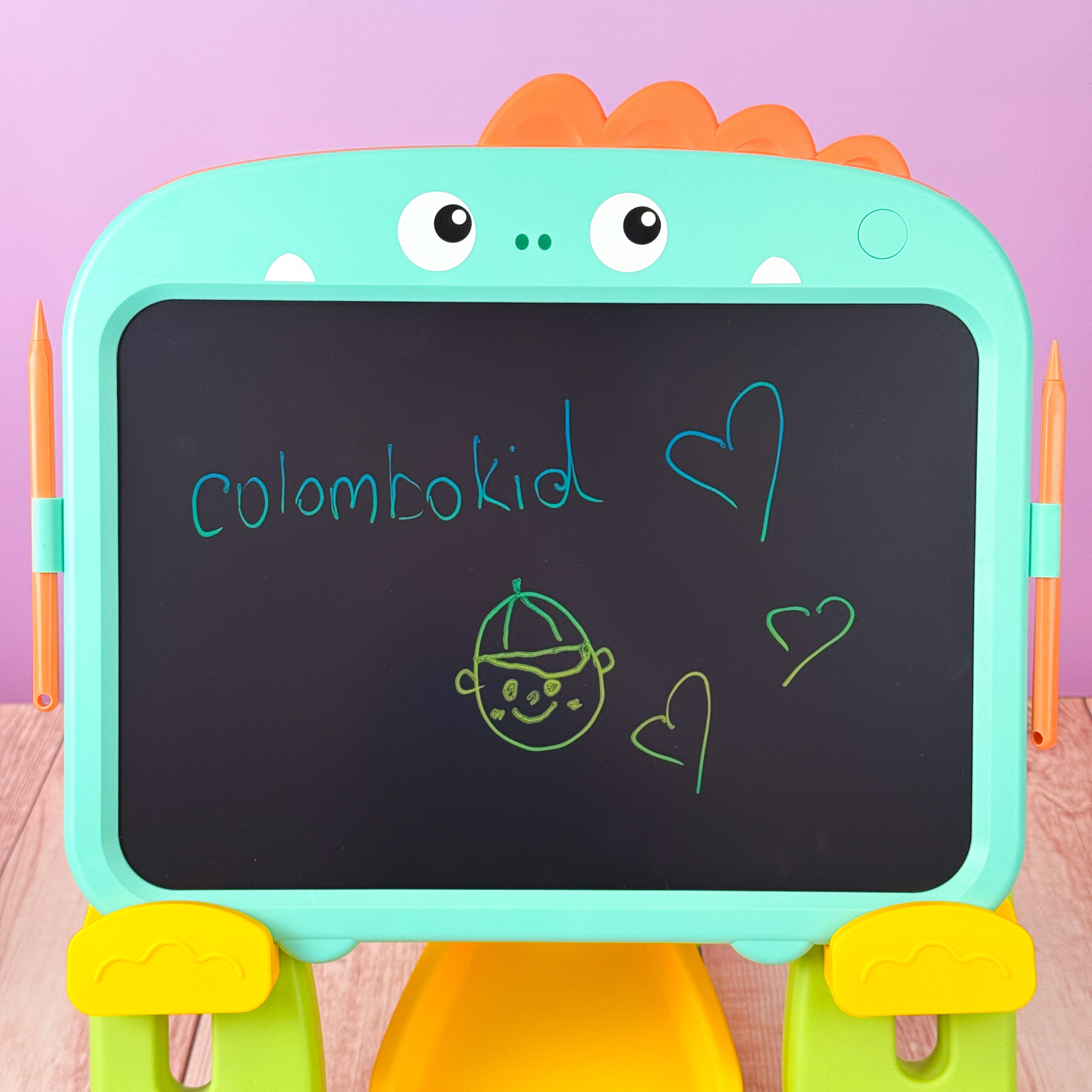 • Навчання через гру: Цей розвиваючий мольберт дозволяє дитині малювати, писати літери, цифри, вивчати кольори та формувати перші творчі навички. Просто натисніть кнопку і зображення стирається за секунду!