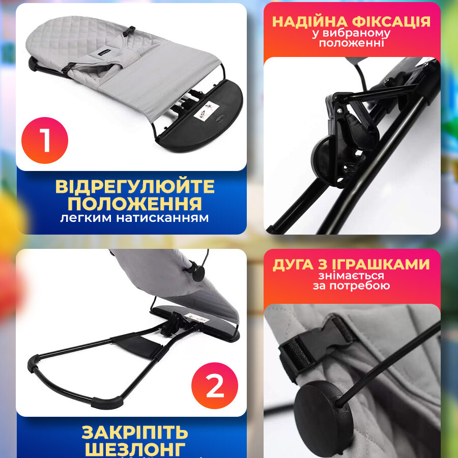 Дитячий шезлонг-гойдалка від COLOMBOKID GR-B — це комфортне та безпечне місце для новонародженого від перших днів життя. Заколисуючий центр об’єднує функції гойдалки, крісла та затишного ліжечка. М’яке сидіння з анатомічною формою підтримує правильне положення дитини, а стильний бежевий дизайн у клітинку гармонійно впишеться в будь-який інтер’єр. Шезлонг оснащений ременями безпеки, м’якою підголівною подушкою та знімною дугою з іграшками. Купити дитячий шезлонг-гойдалку можна за доступною ціною прямо зараз. Замовити онлайн з доставкою по Україні — зручно, швидко та вигідно.