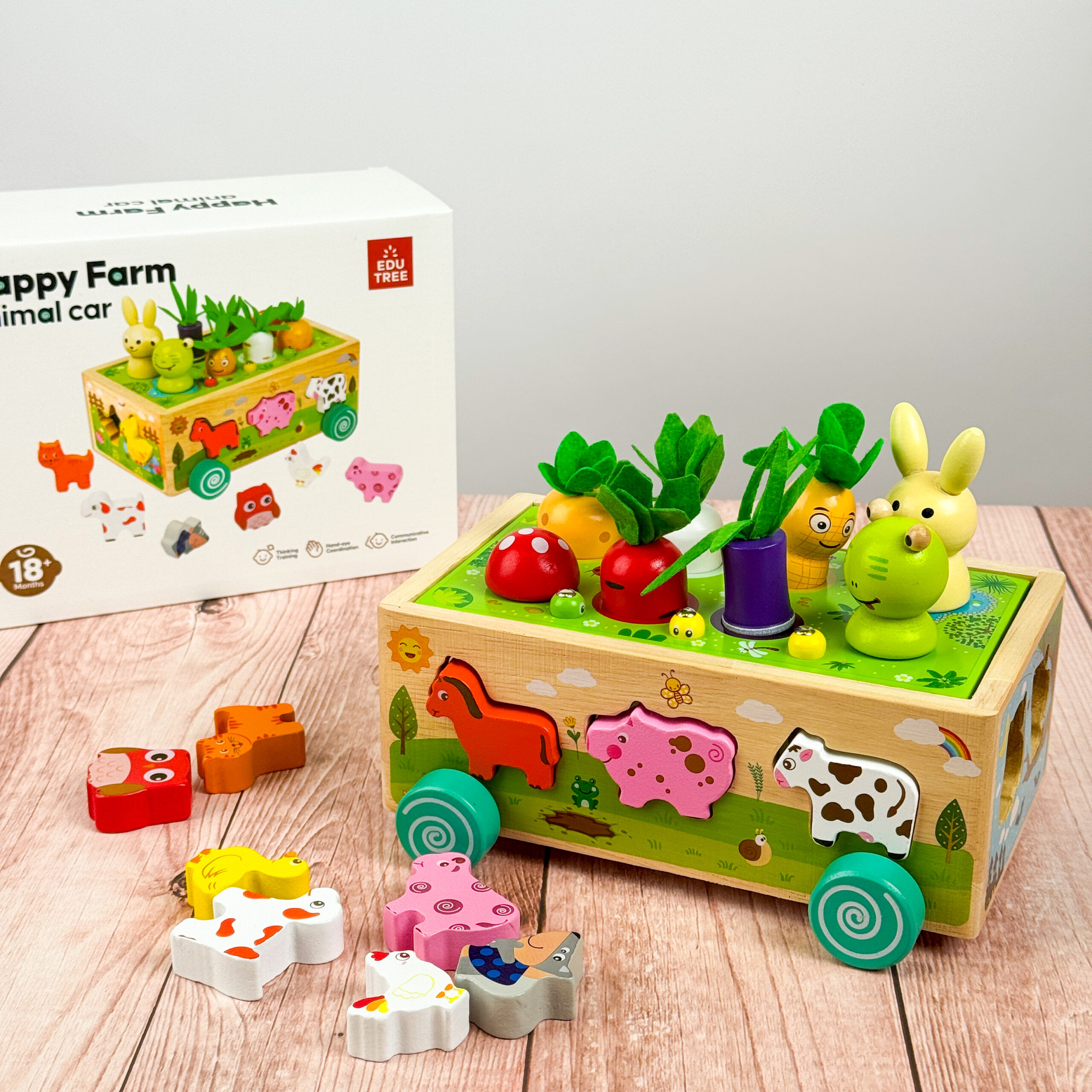 Дерев’яний сортер – розвивальна іграшка «Happy Farm Animal Car» – ідеальний подарунок для малюків від 18 місяців!