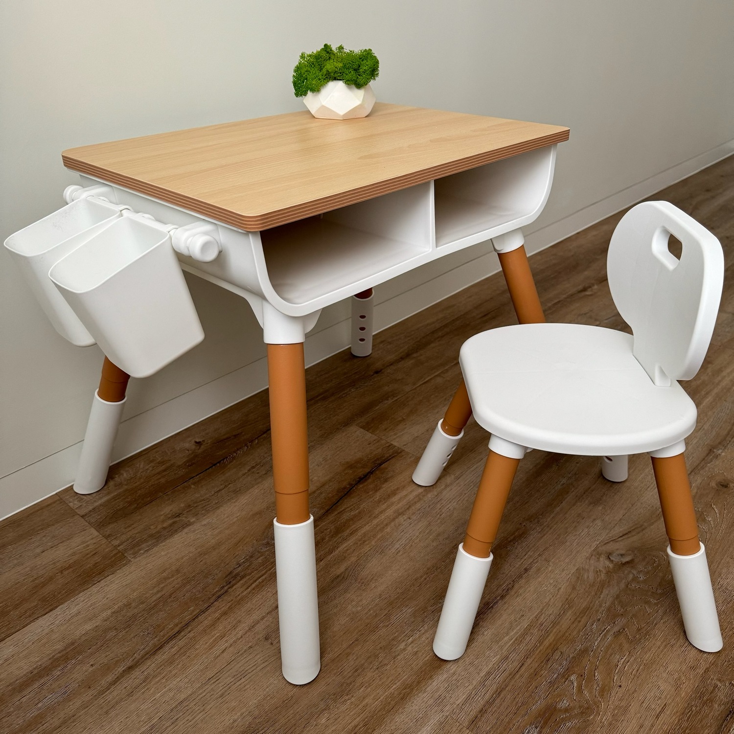 Дитячий дерев’яний стіл зі стільцем — ідеальне рішення для навчання, малювання, читання й розвитку творчості. Завдяки регулятору висоти комплект росте разом із дитиною. Місткі шухлядки та органайзери допомагають зберігати канцтовари, зошити та іграшки у порядку. Екологічно чисте дерево та безпечне покриття гарантують комфорт і довговічність. Плавні краї, міцна конструкція та стильний дизайн роблять цей набір практичним і привабливим доповненням до дитячої кімнати. Купити стіл зі стільчиком для дитини можна просто зараз — вигідна ціна, швидке замовлення та доставка по Україні.