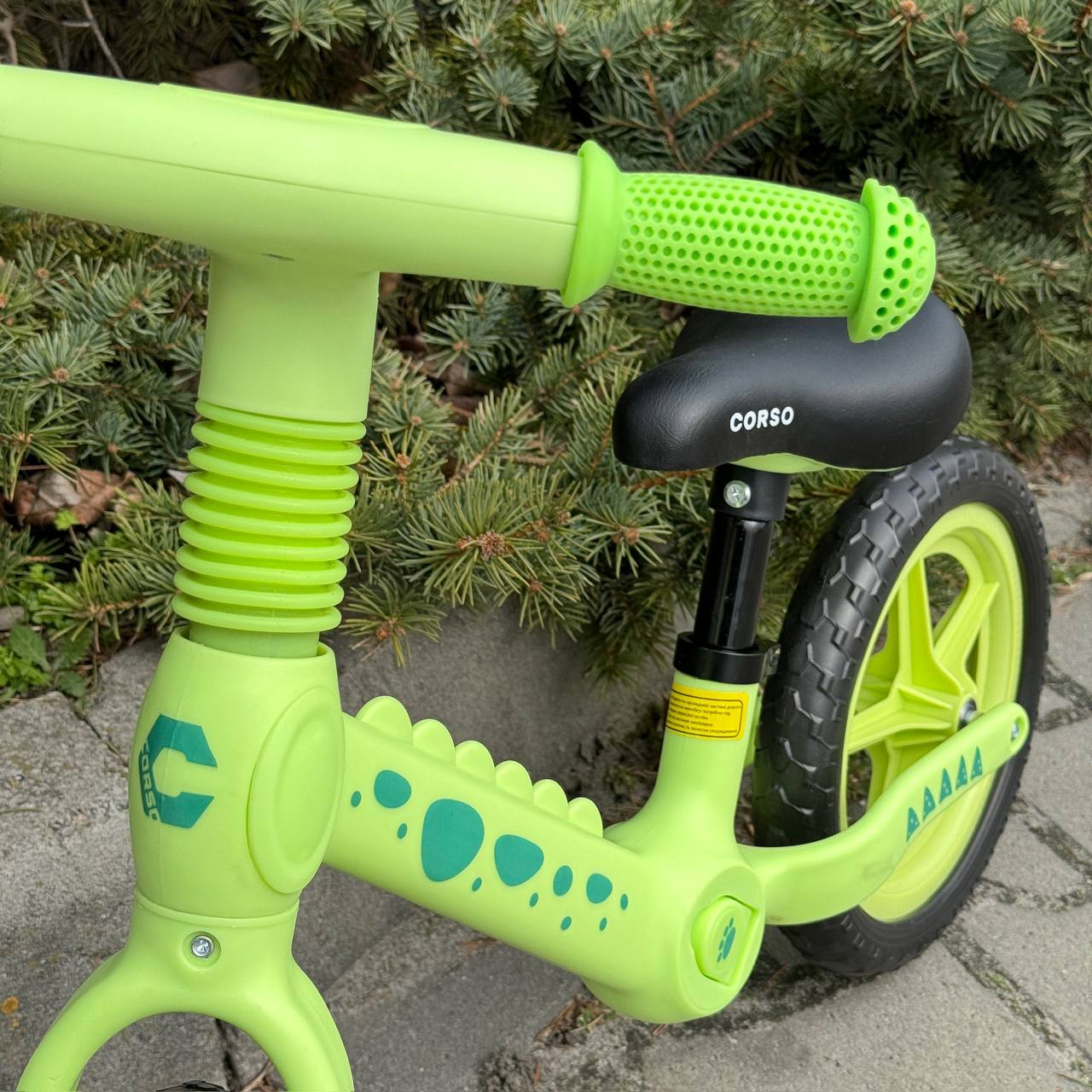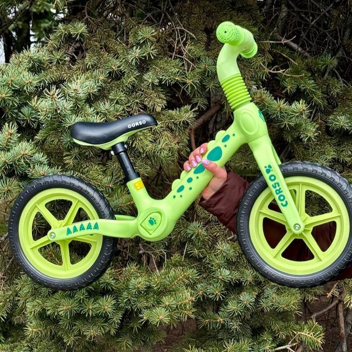 Дитячий велобіг CORSO – нейлонова рама, EVA-колеса 12″, суперлегкий балансбайк, салатовий