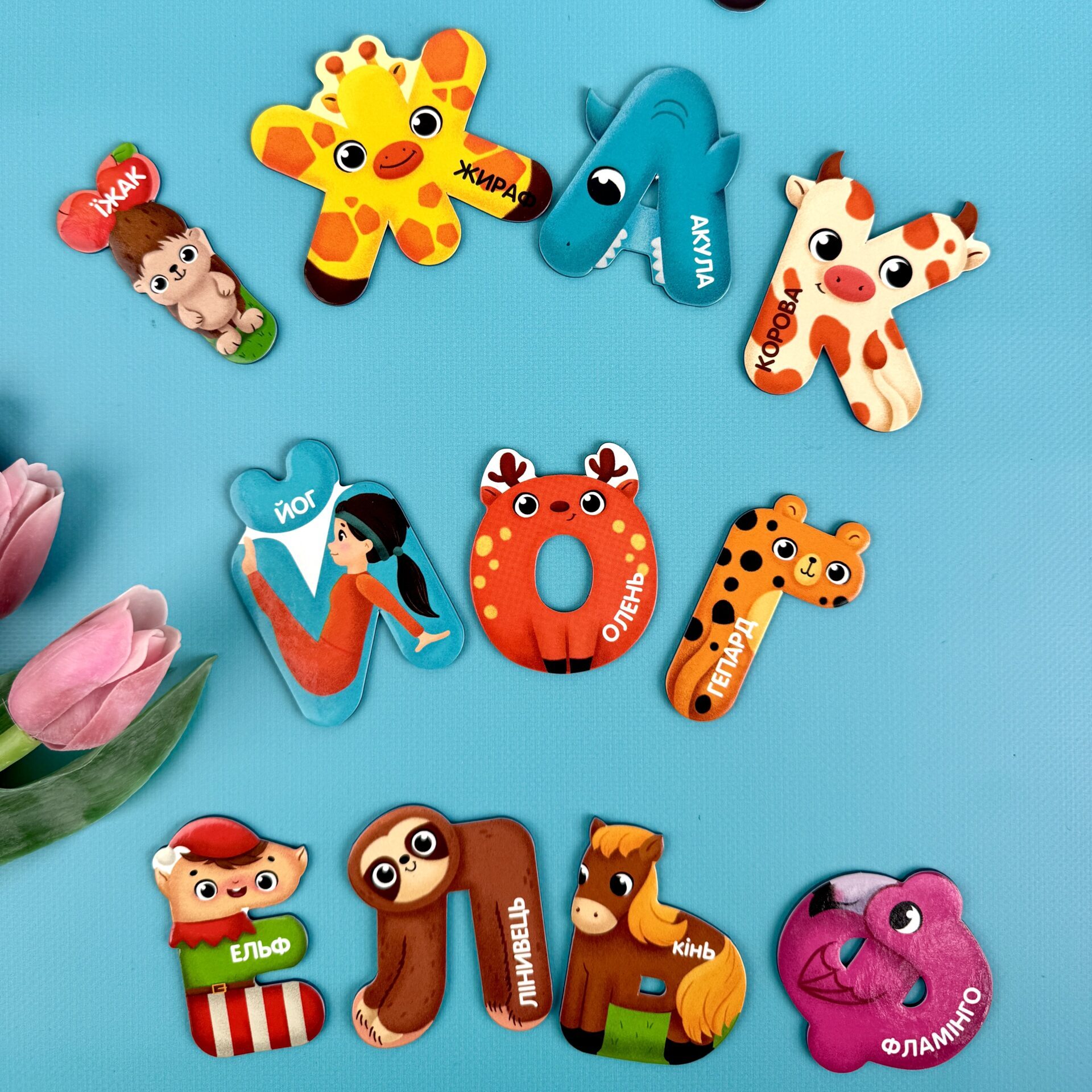 Великі, яскраві магніти з безпечними заокругленими краями зручно кріпляться на будь-які поверхні, а стильна мальовка та цікаві вправи роблять гру захопливою і корисною.