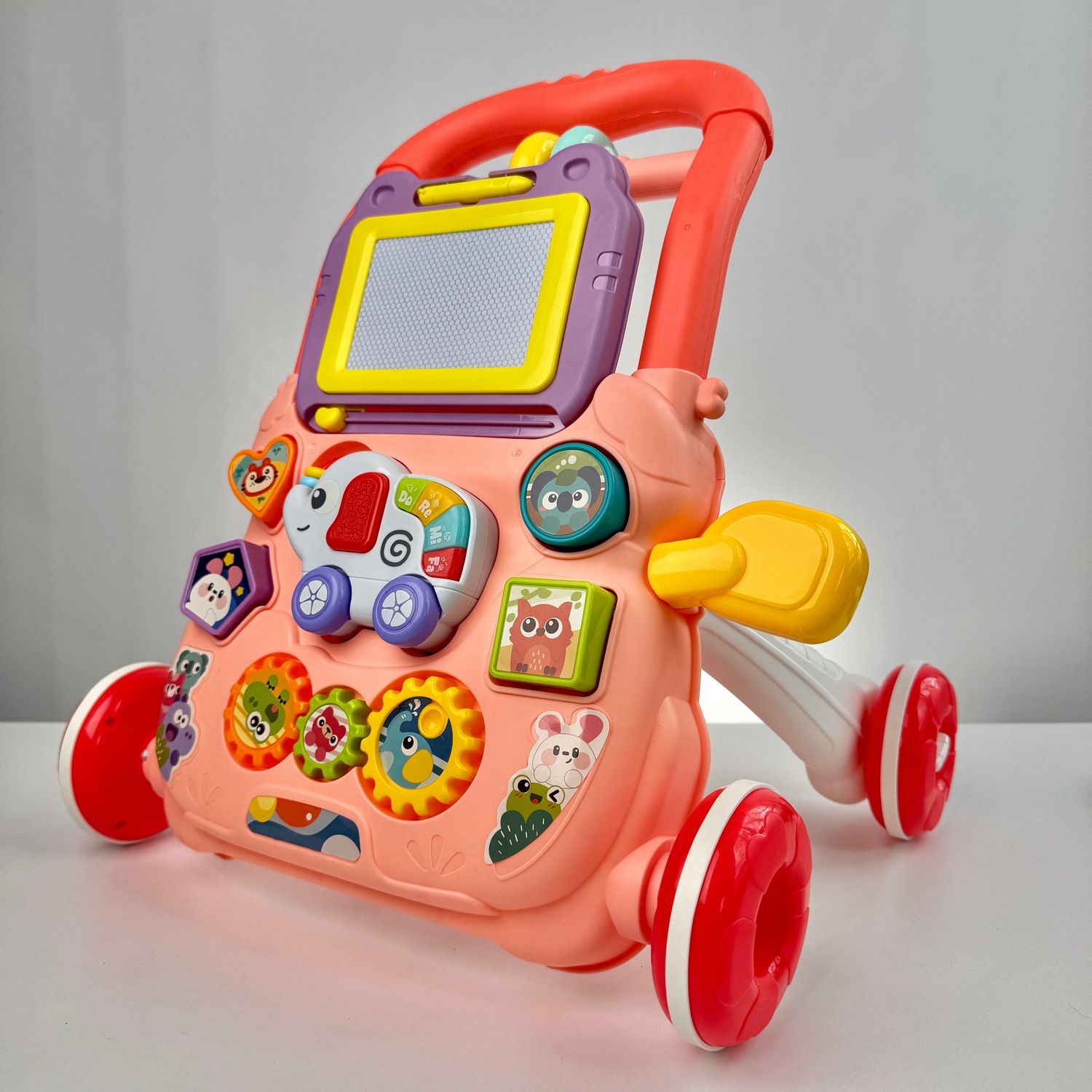 Ходунки-каталка з бізібордом, сортером, магнітною дошкою для малювання та українською озвучкою — це розвивальна іграшка для малюків, яка поєднує гру та навчання. Вони підтримують дитину під час перших кроків, розвивають дрібну моторику, логіку, мовлення та координацію. Інтерактивна панель з яскравими кнопками, фігурками й веселими фразами українською мовою робить гру цікавою та пізнавальною. Безпечні матеріали, стійкі колеса з фіксацією та зручна ручка роблять ці ходунки надійним вибором для батьків. Купити дитячі ходунки з бізібордом за вигідною ціною можна прямо зараз. Замовити онлайн з доставкою по Україні — легко і зручно!