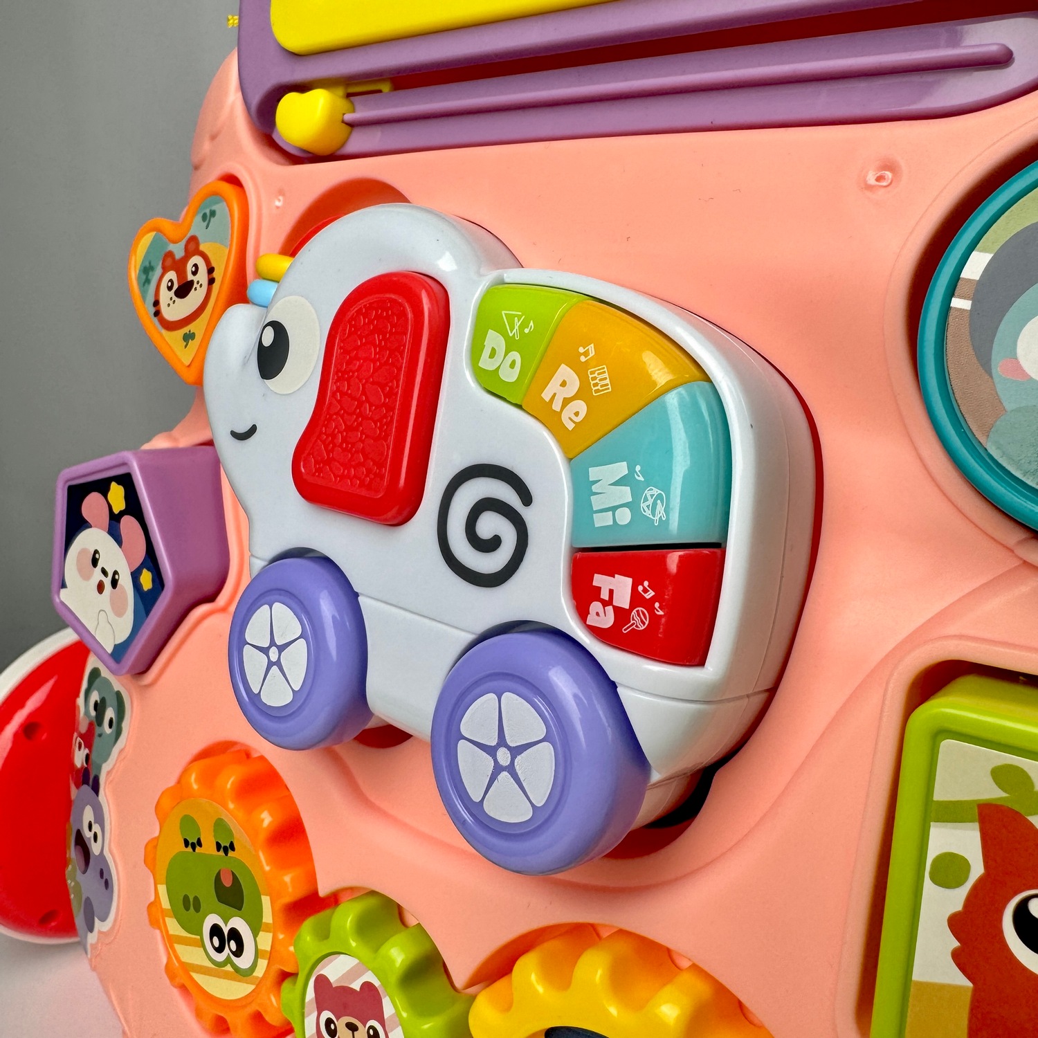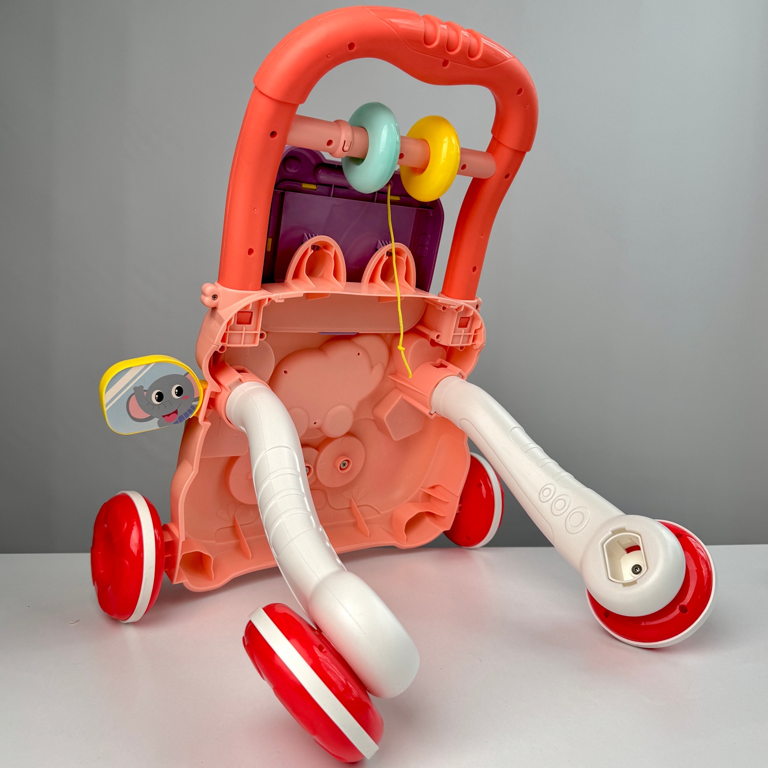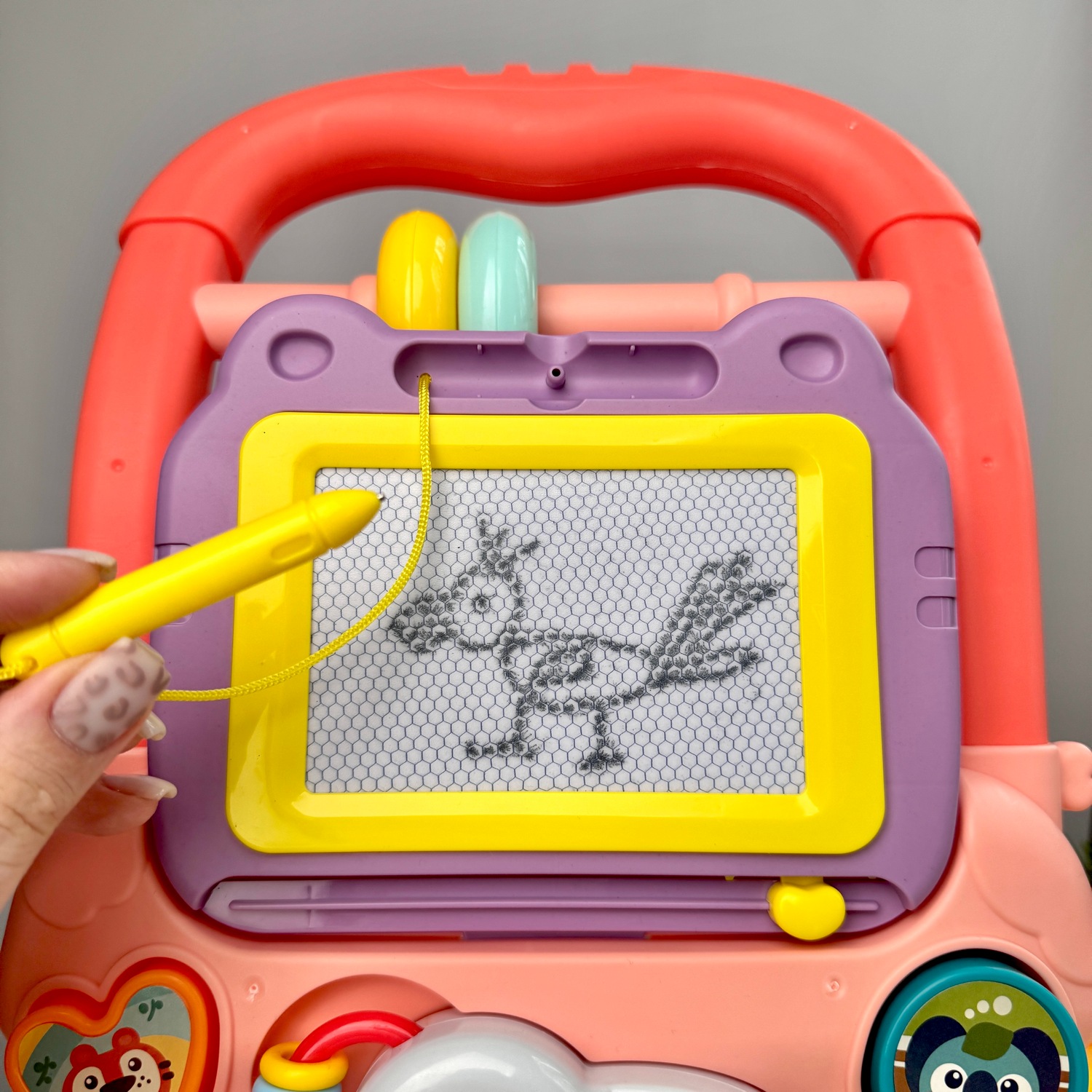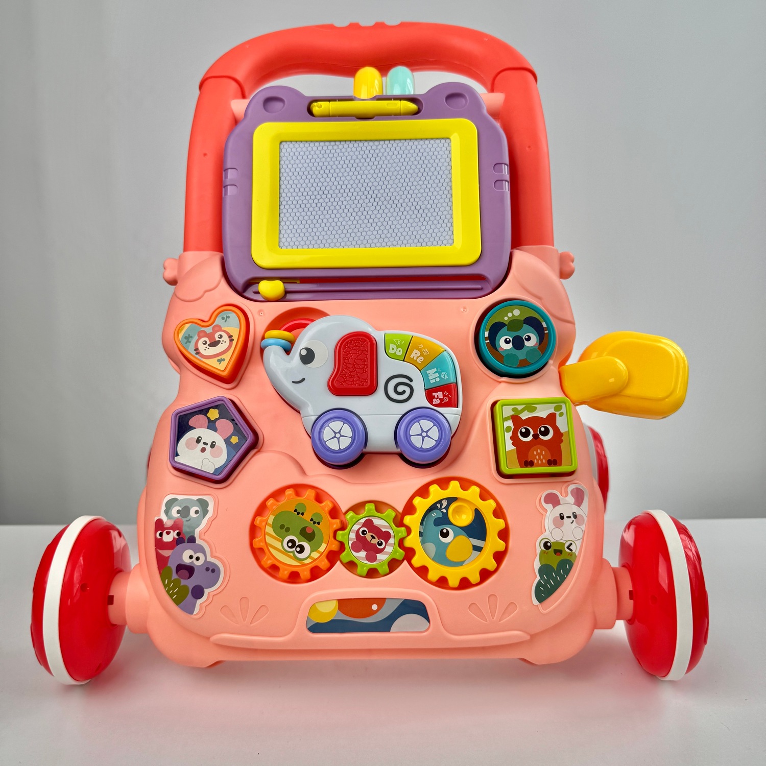 Ходунки дитячі каталка з бізібордом та з розвивальним сортрером з дошкою для малювання для малюка україньска озвучка, рожеві