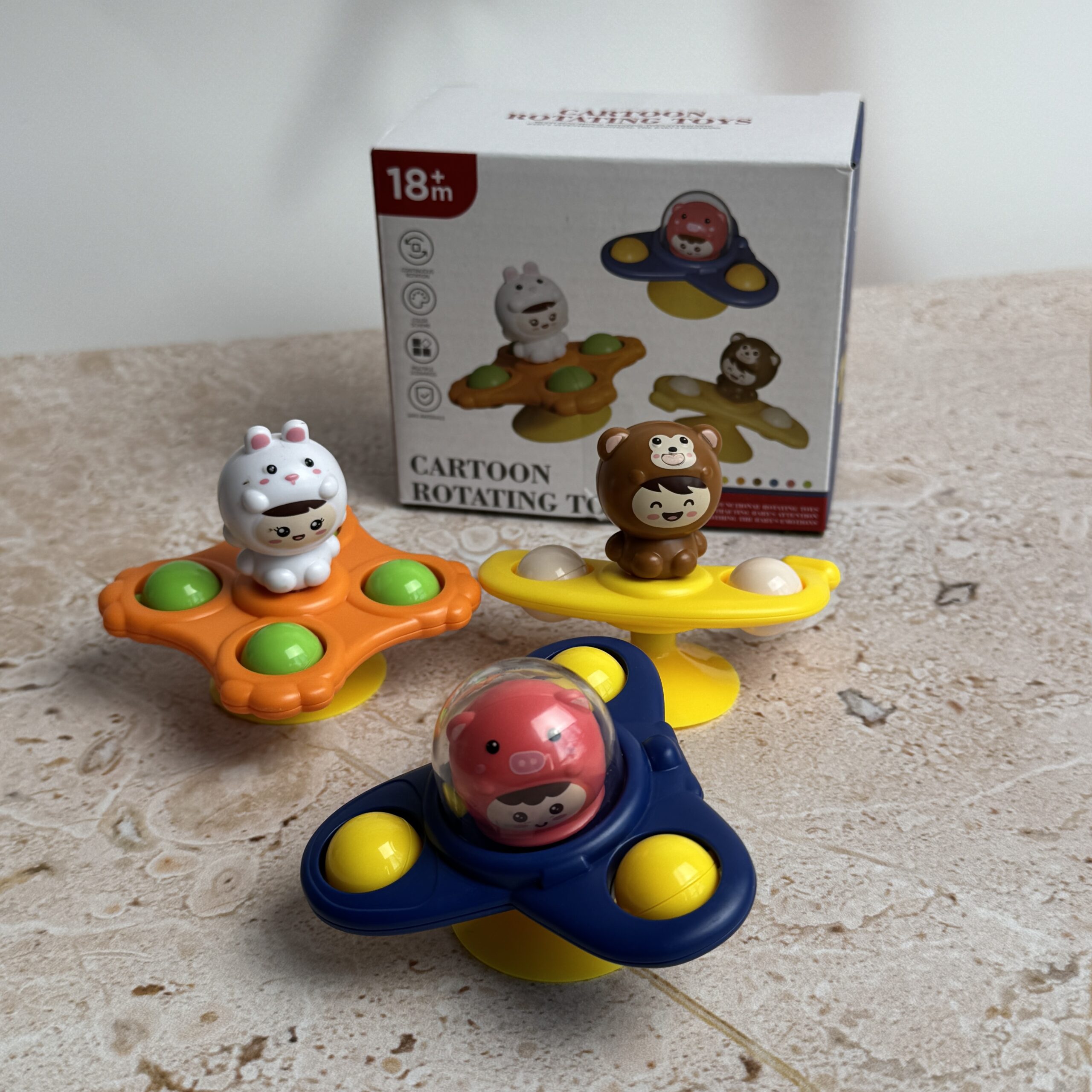 У наборі — три унікальних брязкальця-спінера, кожне з власним оригінальним дизайном. Іграшки не лише розважають, але й допомагають дитині навчитися рахувати під час гри.
