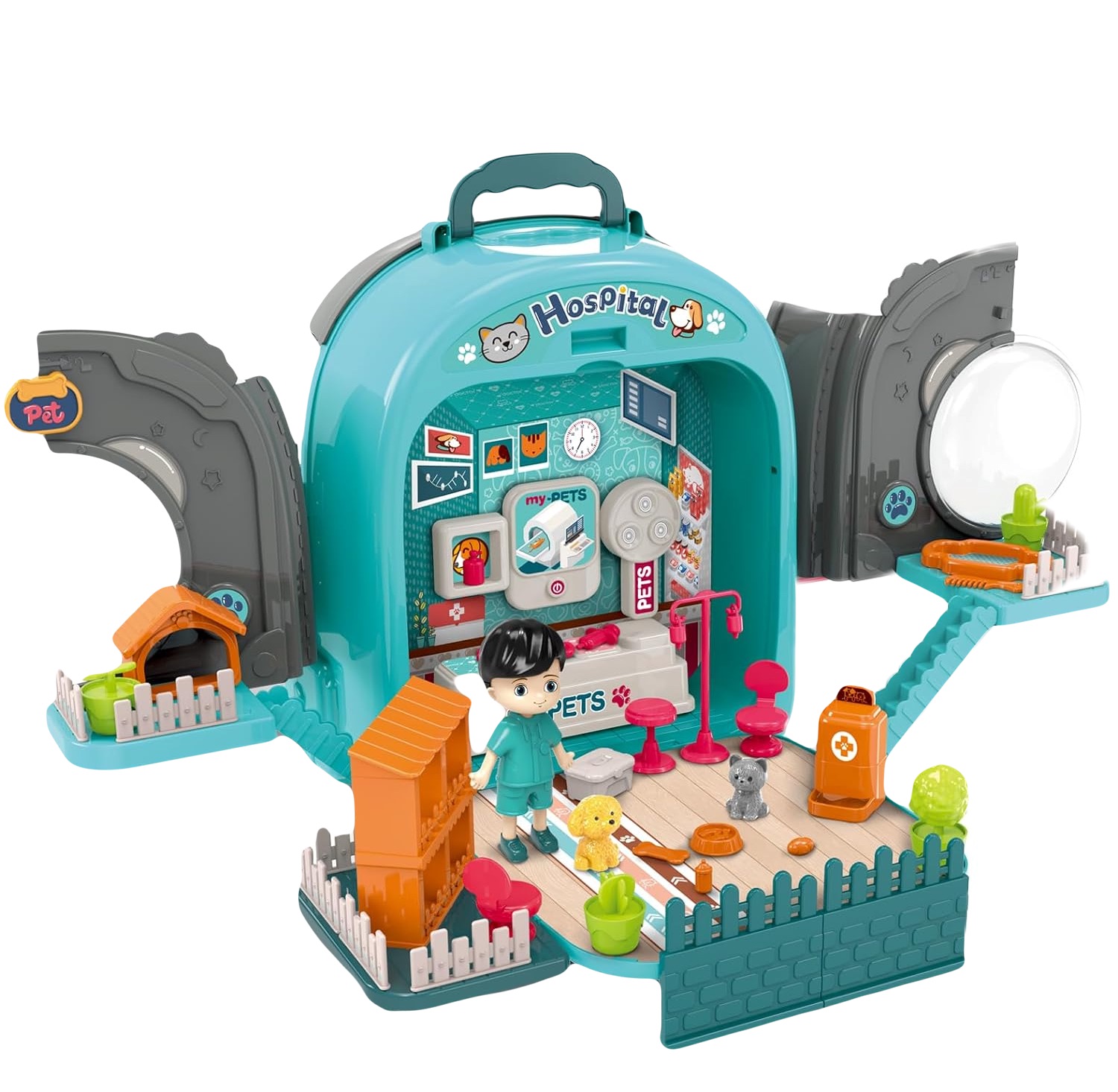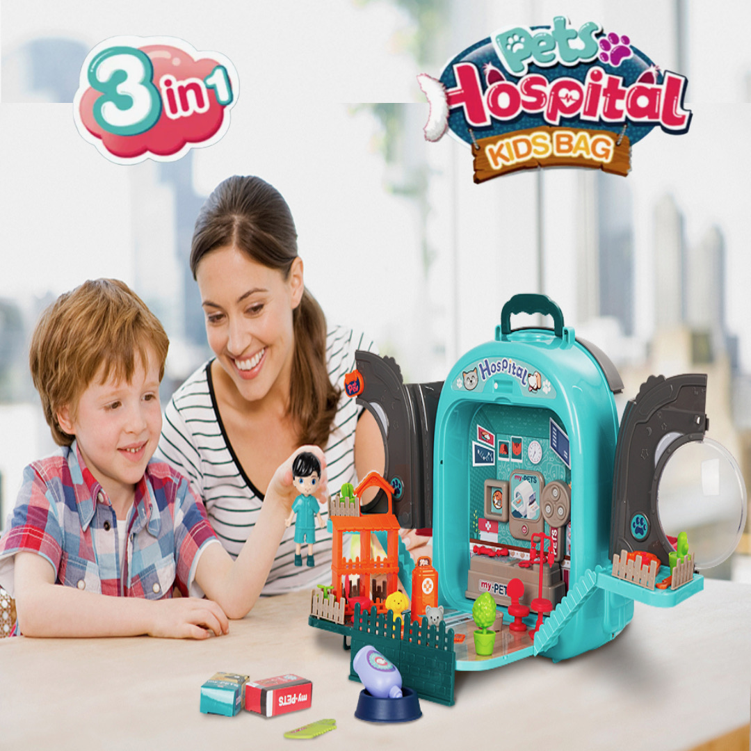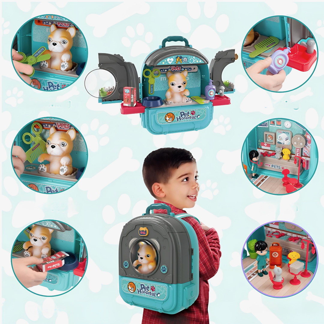 Цей унікальний набір легко трансформується з компактного рюкзака в цілу ферму з городом, садом та будиночками для собак і котів. А головна зірка — великий песик, якого можна годувати, купати, зачісувати і навіть стригти!