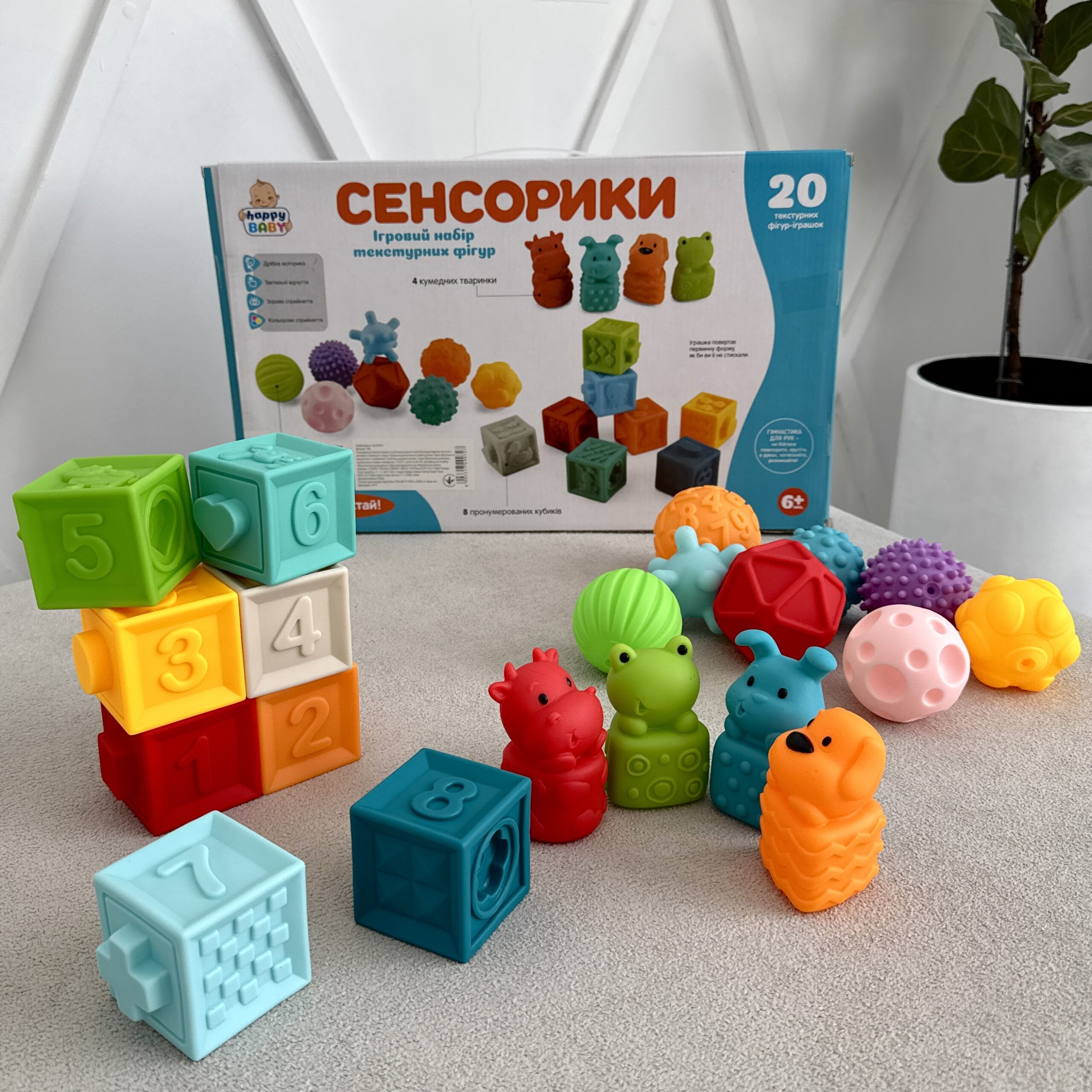 Ігровий набір сенсорики Limo Toy – тварини, кульки та кубики (20 шт.)