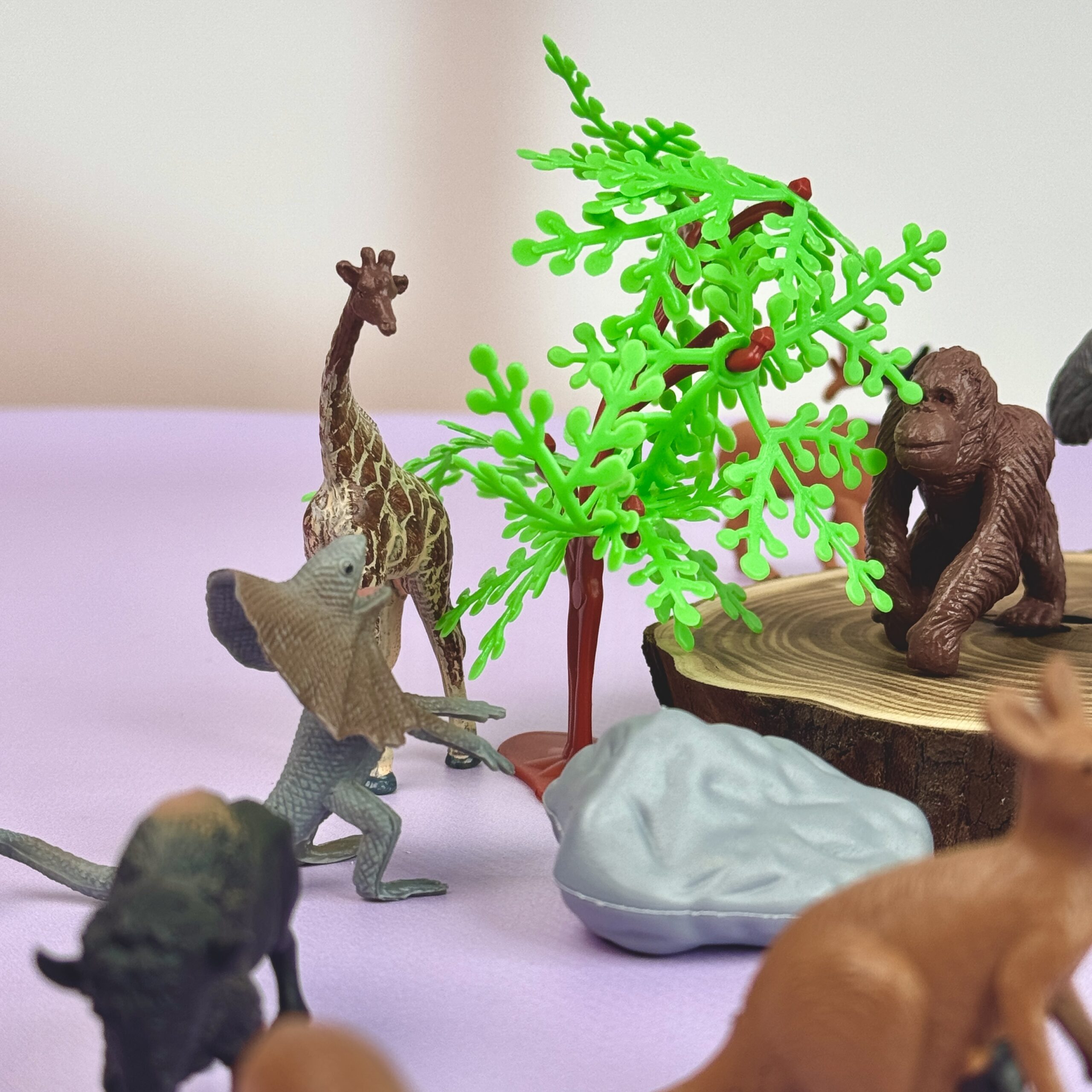 Цей комплект допоможе дитині вивчати мешканців саван, джунглів та лісів прямо в кімнаті — без книжок чи екранів. Фігурки не тільки реалістично виглядають, а й відкривають безліч можливостей для сюжетних ігор, розвитку мовлення та уяви.
