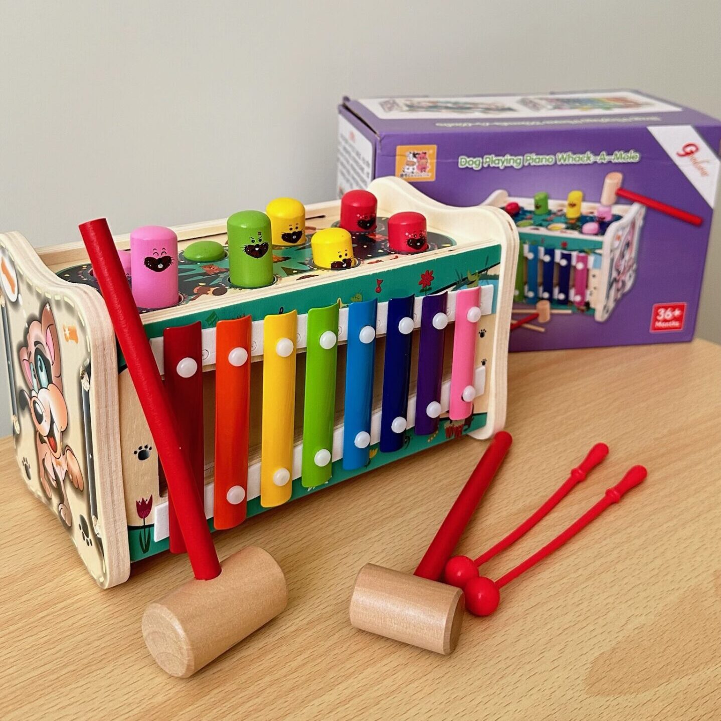 Інтерактивна дерев’яна гра 2 в 1 WToys С 48710 – стукалка та ксилофон у подарунковій коробці