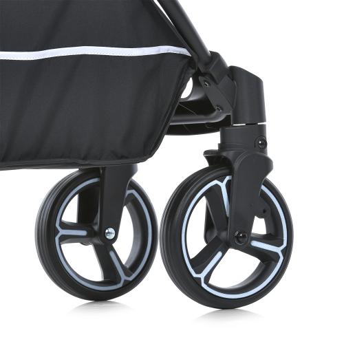 Колеса з пінорезини не потребують підкачування, легко проходять будь-яке покриття. Всі колеса оснащені амортизацією, знімаються одним рухом — зручно для догляду та зберігання.