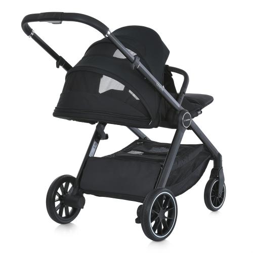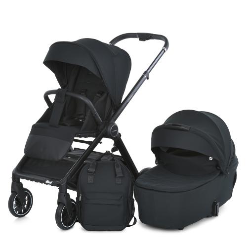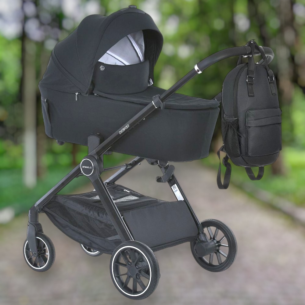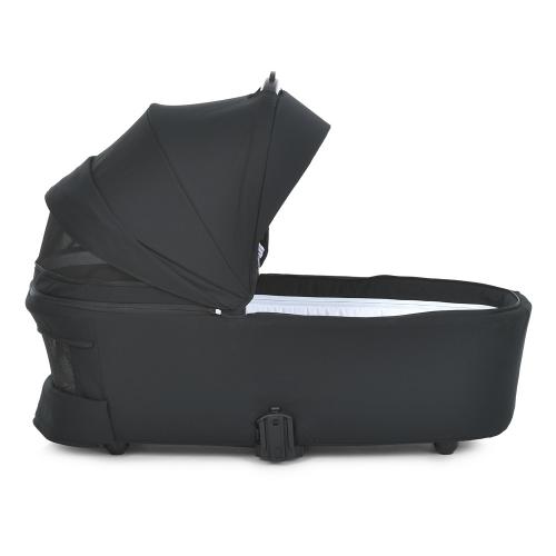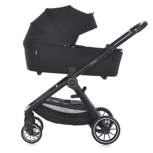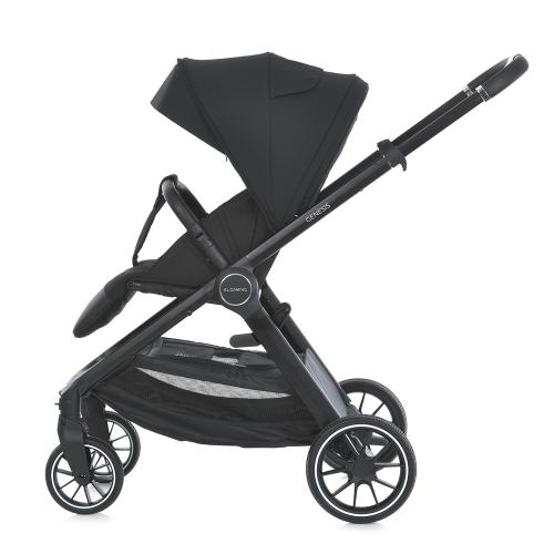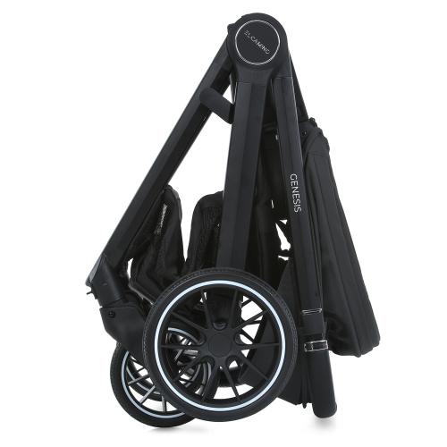 Коляска дитяча універсальна 2в1 El Camino Genesis ME 1126 Jet Black – алюмінієва рама, знімна люлька, поворотні колеса, закритий кошик, вентиляція та магнітні ремені, чорний колір