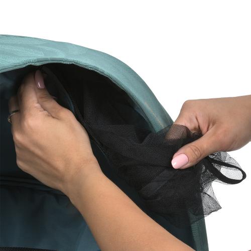 Регульована батьківська ручка з м’якою оббивкою з екошкіри підлаштовується під зріст користувача, роблячи керування коляскою максимально зручним. У комплекті йде чохол для ніжок, дощовик і вбудована москітна сітка, що гарантують захист від різних погодних умов.