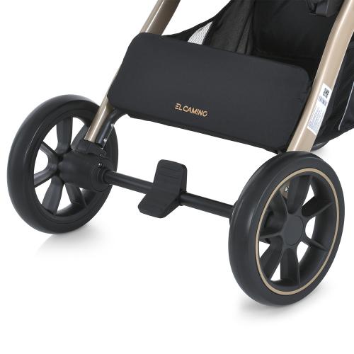 Ця модель створена для батьків, які шукають поєднання функціональності, зручності та стильного дизайну. El Camino Dynamic Pro має міцну алюмінієву раму, що одночасно легка та витривала, а також великі амортизовані колеса EVA, які гарантують плавний і комфортний рух по будь-яких поверхнях. Коляска оснащена глибоким капюшоном з регулюванням, що захищає дитину від сонця, вітру та опадів, а також оглядовим віконцем для постійного контролю за малюком.