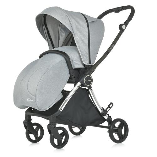 Всесезонна прогулянкова коляска El Camino Versa ME 1078 – реверсивний блок, амортизовані колеса, легка алюмінієва рама, знімний багажник до 3 кг, сірий колір