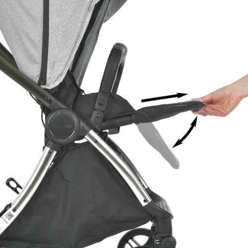 • Реверсивний блок — легко переставляється вперед або назад по ходу руху, що дозволяє дитині бачити батьків або навколишній світ. Для зміни положення достатньо опустити спинку і підняти підніжку.