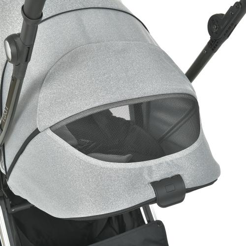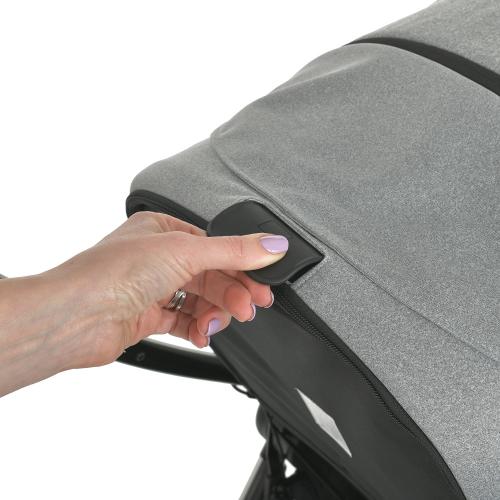 • Великий капюшон з подовжуючою секцією на блискавці, що перетворюється на “батискаф”, має додатковий козирок для захисту від сонця і оглядове віконце з москітною сіткою.