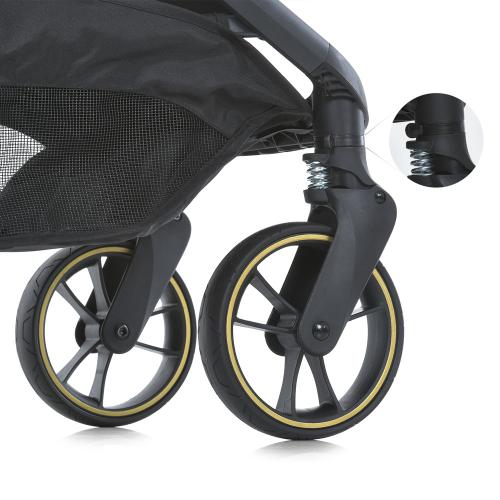 Прогулянкова коляска з автоскладанням El Camino ME 1127-G BEYA Black — амортизація, PU-колеса, алюмінієва рама, чохол на ніжки, регульована спинка і підніжка, чорний колір