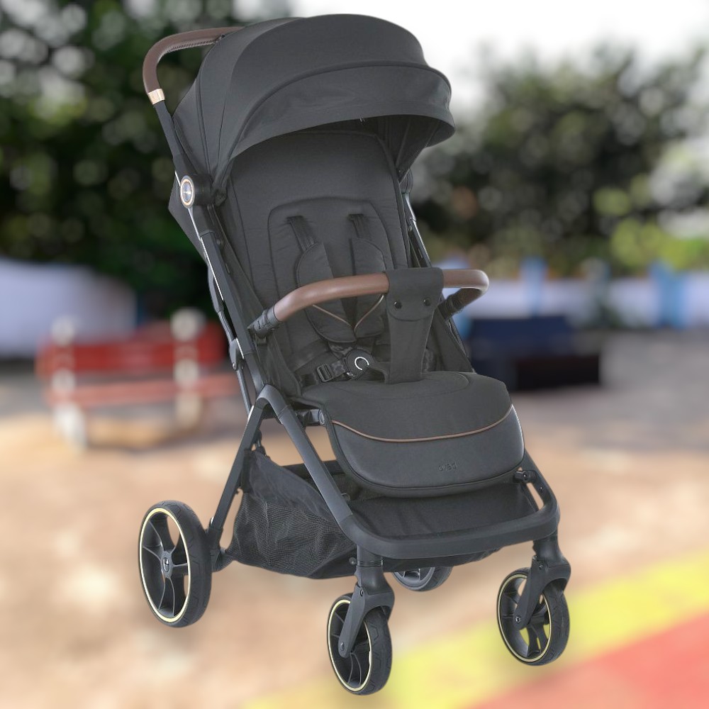 El Camino BEYA чорного кольору — сучасна автоскладна коляска для зручних прогулянок у будь-яку погоду