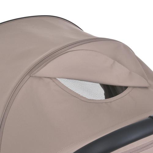 Модель обладнана простим у налаштуванні глибоким капюшоном із блискавкою, що забезпечує комфортне затінення, та вентиляційним віконцем ззаду – для приємної прохолоди влітку. Додаткове оглядове віконце та кишеня для дрібниць додають зручності батькам під час прогулянок.