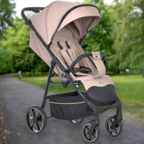 Прогулянкова коляска-книжка El Camino ME 1113-2 FIJ+I бежевого кольору – сучасне рішення для щоденних прогулянок з дитиною від народження до 4 років. Її легка, але витривала сталева конструкція гарантує довготривале використання, а двошарова тканина з водовідштовхувальним просоченням надійно захищає малюка в дощову або вітряну погоду.