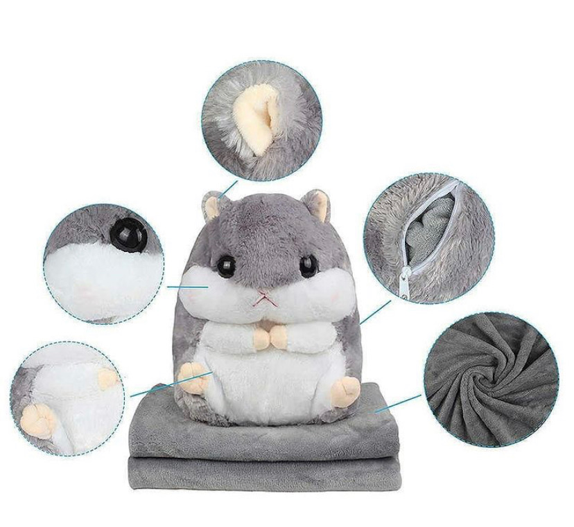 Комфортна м’яка іграшка-трансформер Хом’як: плед і подушка всередині, сірий колір