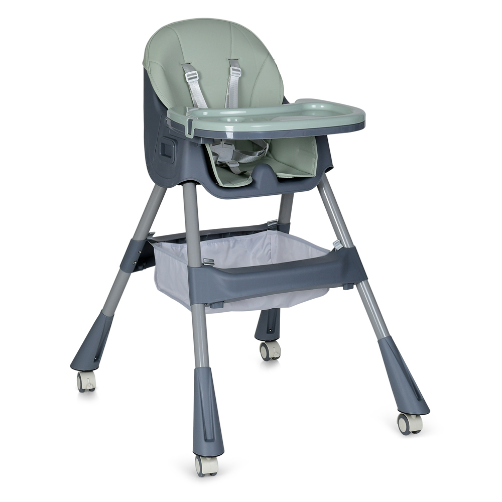 Складне крісло для годування Bambi M 5722 з регульованою спинкою, знімним столиком і кошиком для іграшок (оливковий)