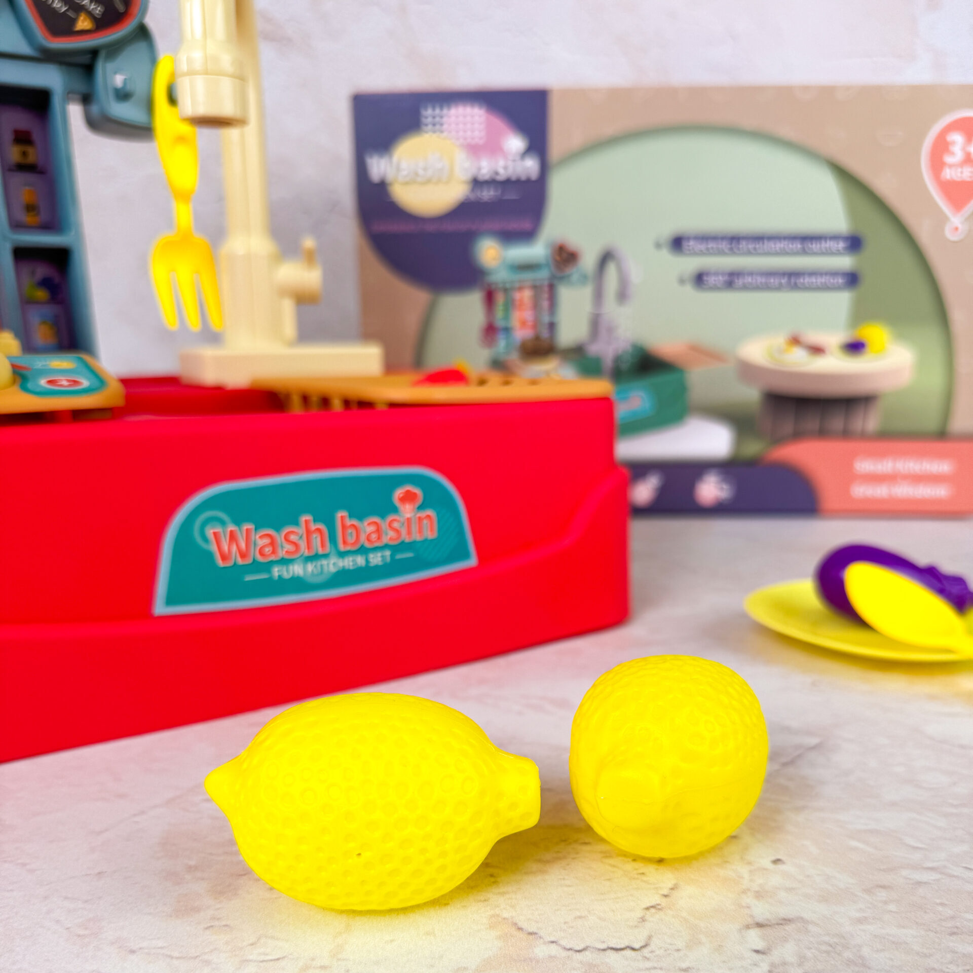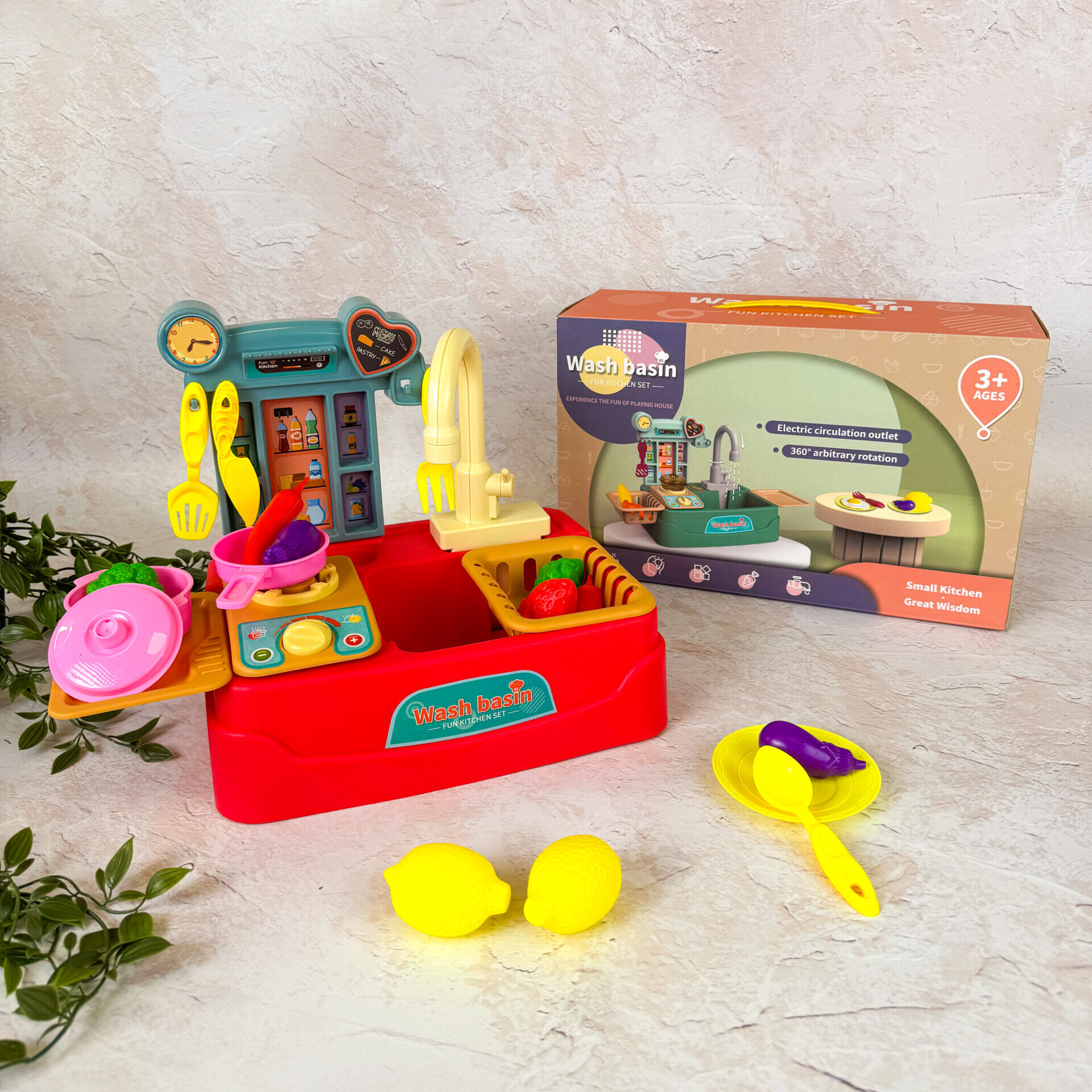 Малюки з раннього віку прагнуть наслідувати дорослих, тож важливо направити це бажання у корисне русло — наприклад, у гру в прибирання та хатні справи. Допоможе в цьому інтерактивна дитяча мийка з автоматичною подачею води! Завдяки електричному крану з помпою, дитина може мити посуд майже як у справжній кухні. А ще в комплекті — муляжі їжі, набір посуду, кухонне приладдя, наклейки та плитка з тріскачкою, що імітує готування.