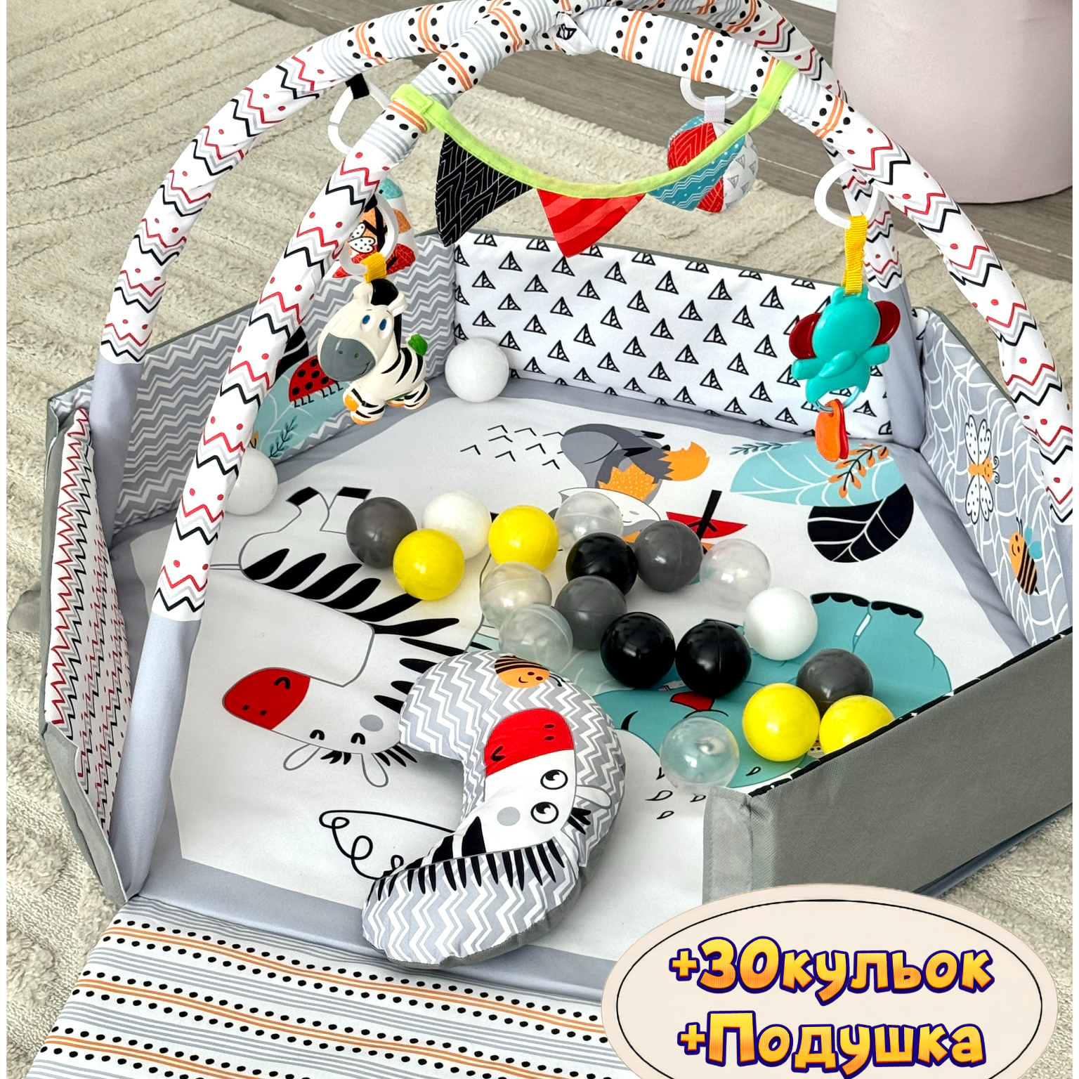 Дитячий ігровий килимок 3в1 з іграшками та 30 кульок