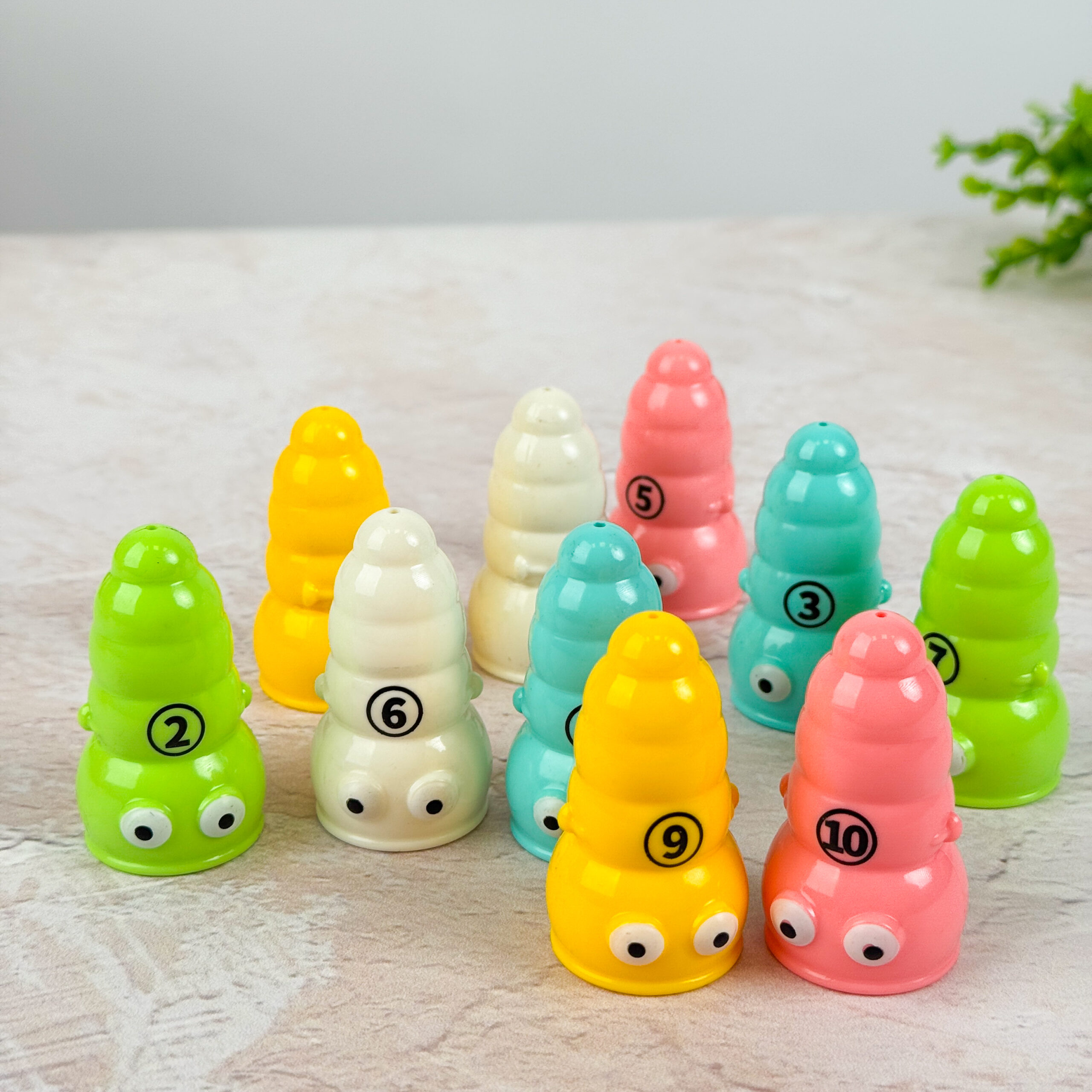 - До комплекту входить 10 хробачків у 5 різних кольорах;