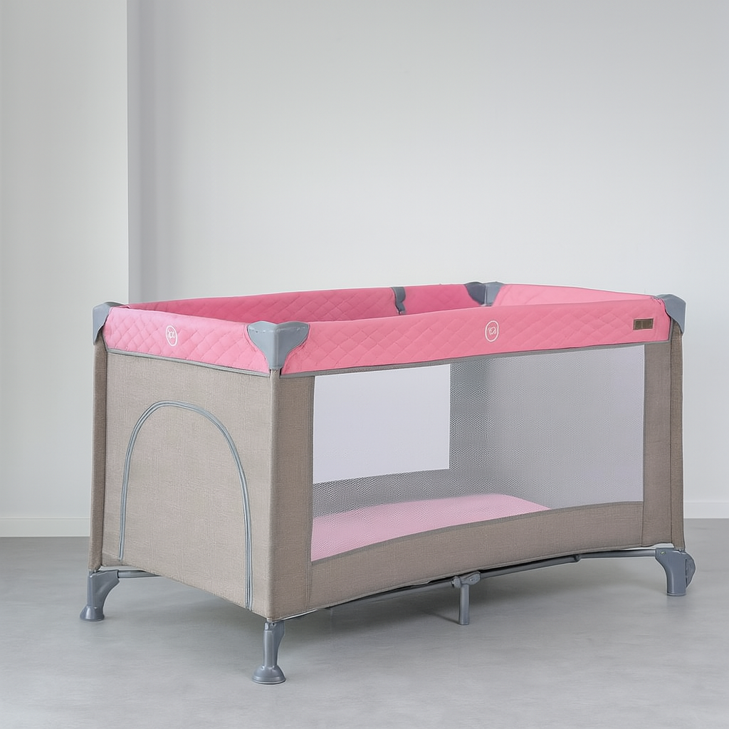 Ігровий манеж-ліжечко EL Camino Active ME 1096 — з лазом, коліщатками та кільцями для вставання (Рожевий-Сірий)