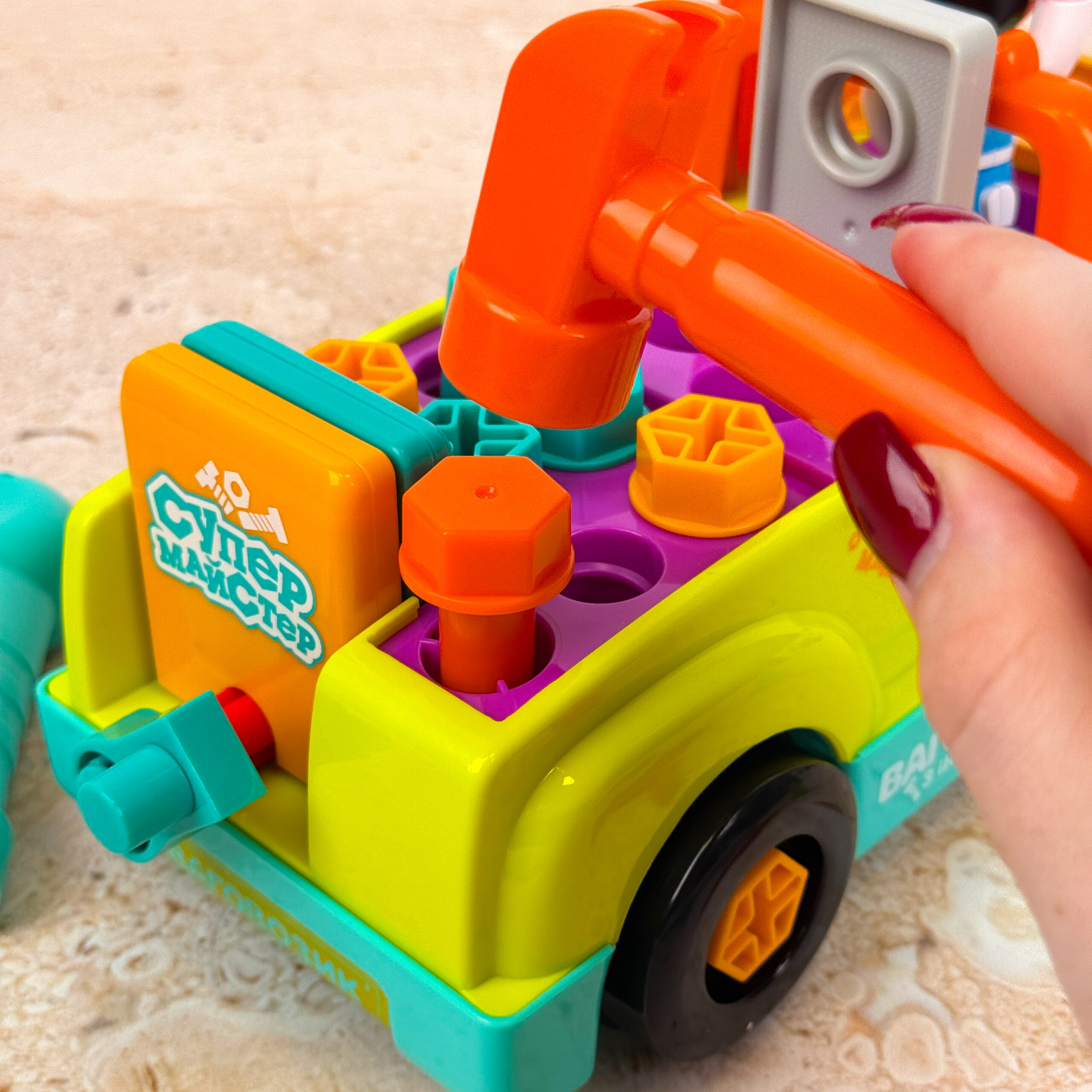 Дитячий інтерактивна машинка конструктор — Машинка для складання з викруткою, світлом і звуком для дітей від 3 років