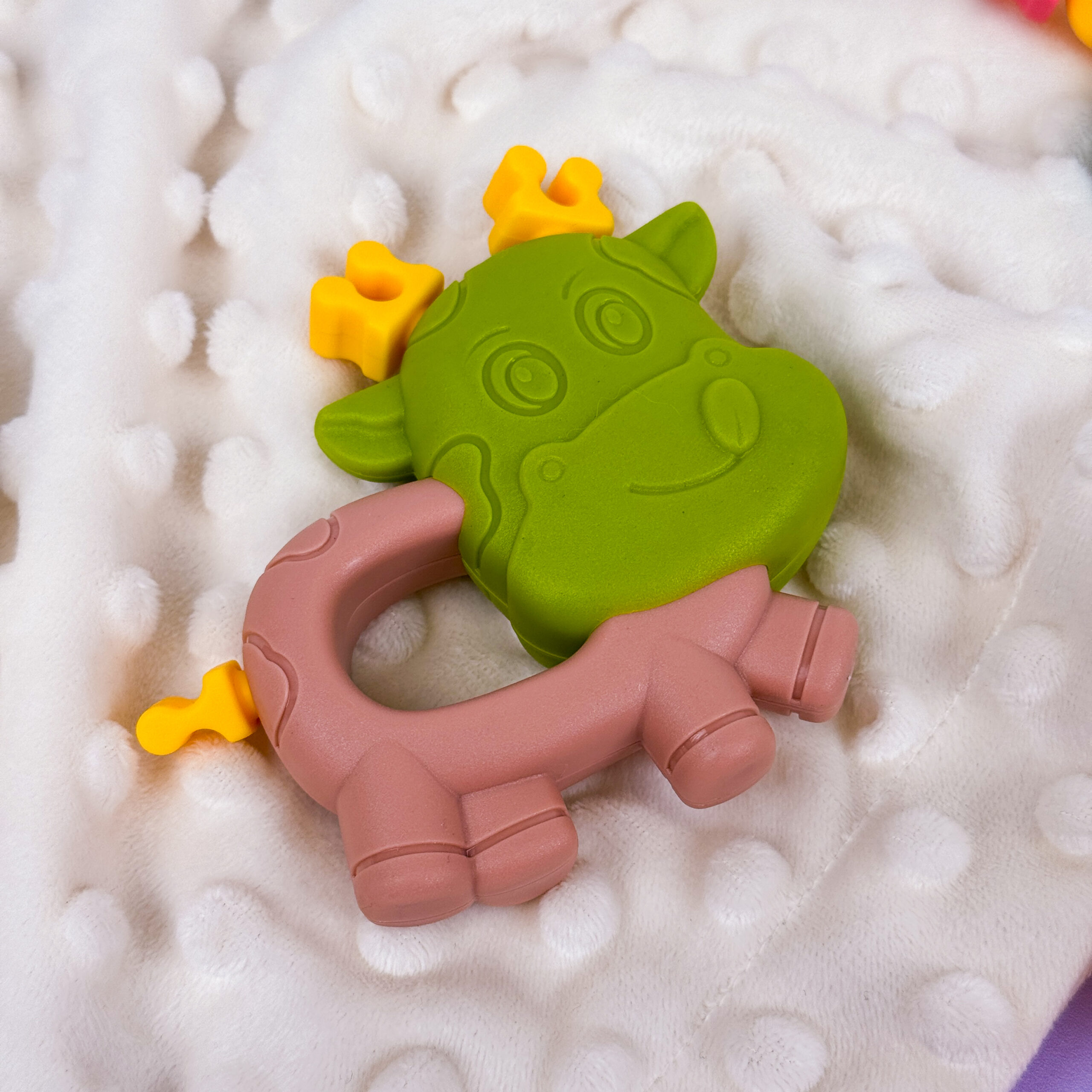 - ✅ Гризунець із рельєфною текстурою – полегшує біль під час прорізування зубів.