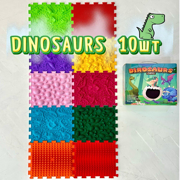 Ортопедичний масажний килимок “Динозаври” – 10 модулів для профілактики плоскостопії