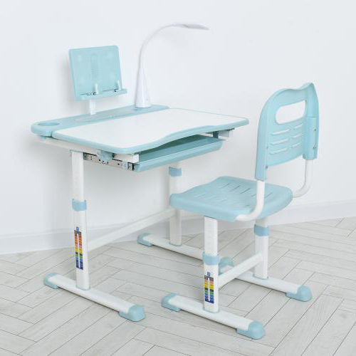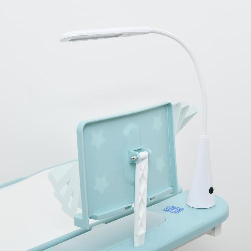 Парта оснащена зручною нішею під стільницею для зберігання книг і приладдя. В комплект входить LED лампа для комфортного освітлення та підставка для книг або планшета, яка обертається на 180°, забезпечуючи зручність під час читання.