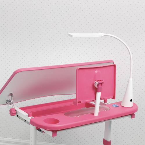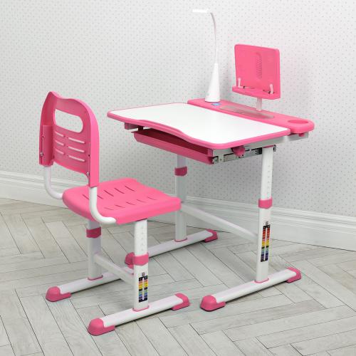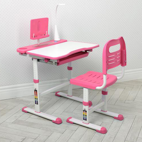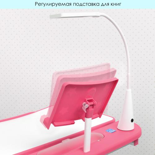 Дитяча парта зі стільчиком Bambi M 4428-8: регулювання висоти та нахилу до 60°, лампа, підставка для книг (Рожевий)