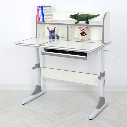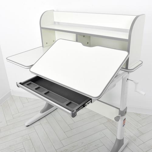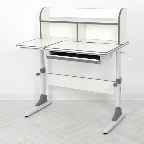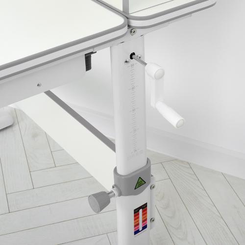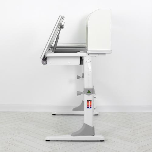 Модель обладнана регульованою висотою (за допомогою мультипозиційної ручки) та частиною стільниці з регулюванням нахилу, що дозволяє адаптувати робочу поверхню до індивідуальних потреб школяра. Це сприяє правильній поставі та зменшує навантаження на спину й очі.