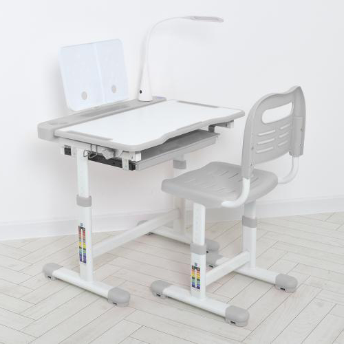 Дитяча парта з регулюванням висоти Bambi M 5068-11: з лампою, підставкою для книг і вбудованим стільчиком (Сірий)