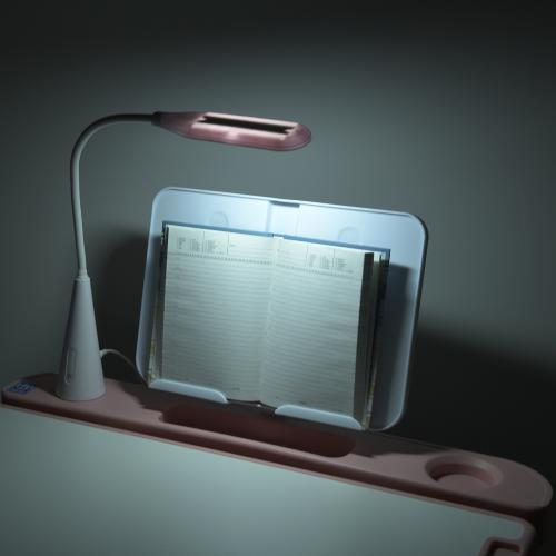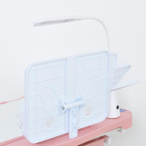 Вбудована підставка для книг дозволяє зручно розмістити навчальні матеріали, а лампа, що входить до комплекту, гарантує якісне освітлення навіть у вечірній час.