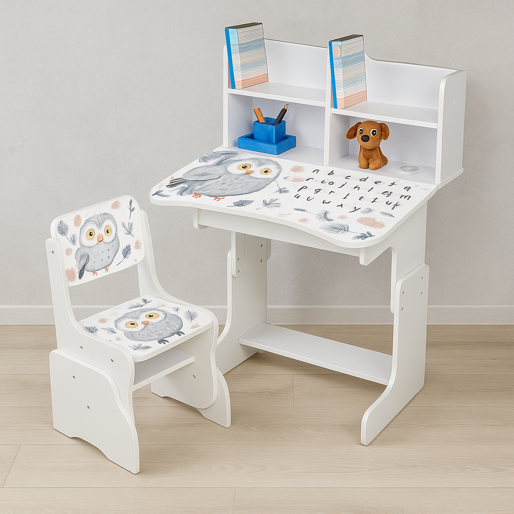 Зручна дитяча парта з надбудовою та стільцем Bambi N 2071-10-1 Пташка — комфортне рішення для навчання вдома