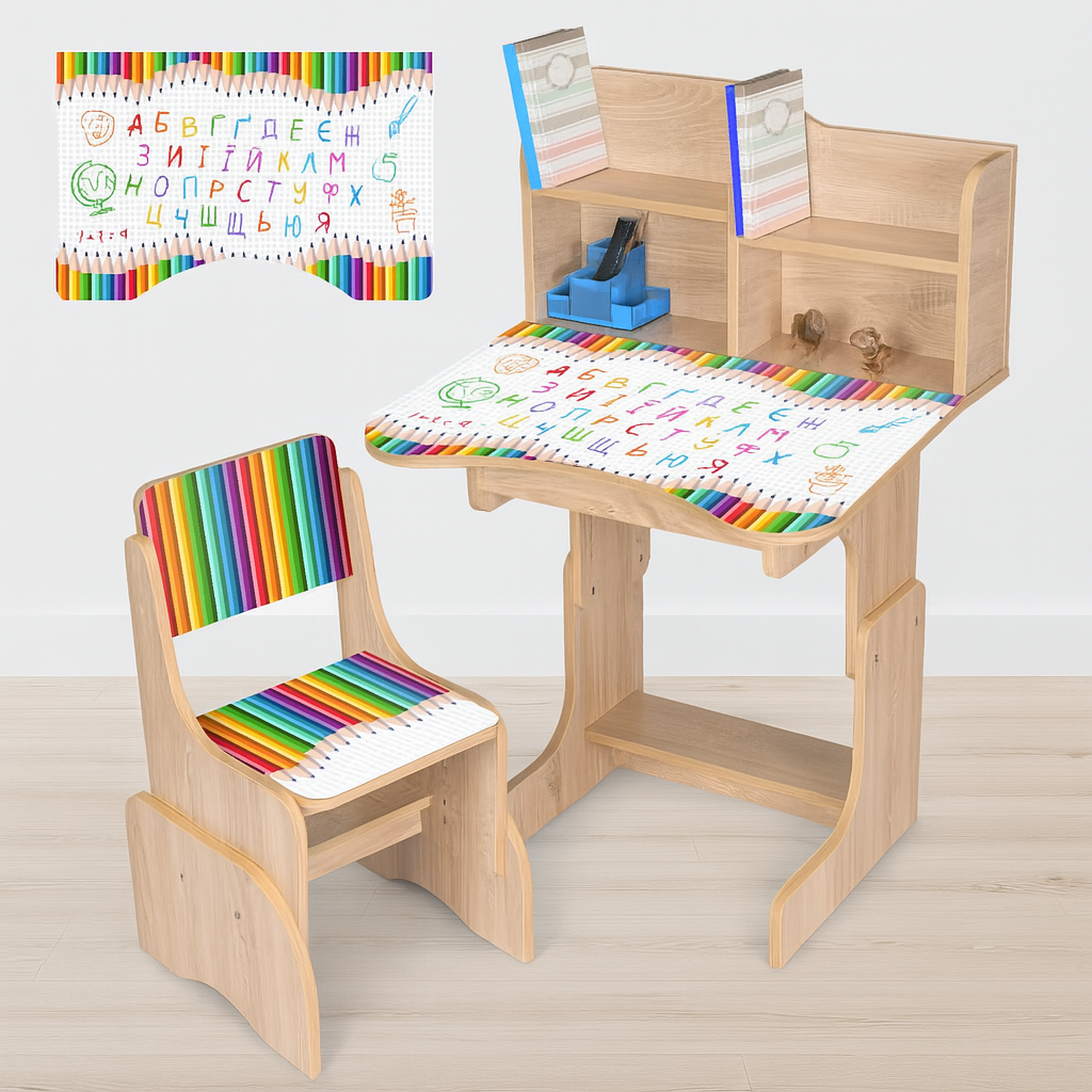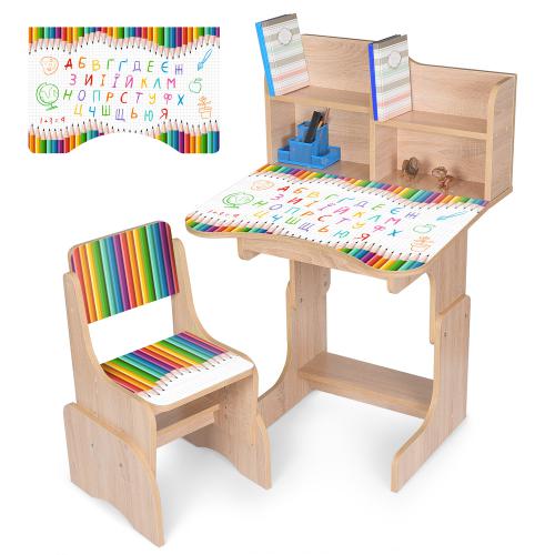 Bambi N 2071-11-3 Олівці — зручна та функціональна дитяча парта з надбудовою і стільцем для навчання та розвитку