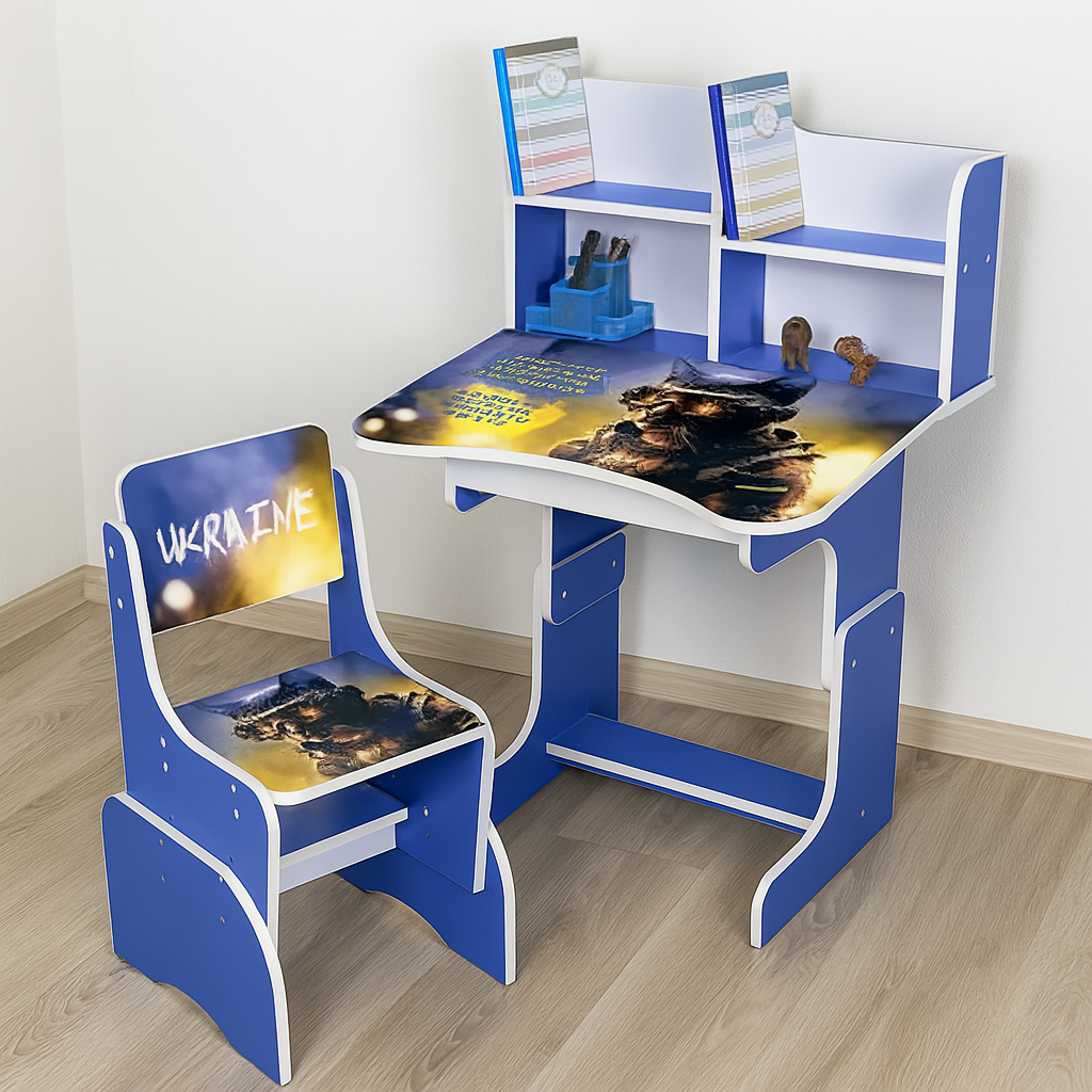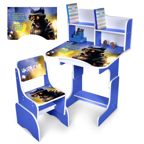 Функціональна дитяча парта з надбудовою та стільцем Bambi N 2071-2-4 Кіт-воїн — ідеальний вибір для навчання, читання та творчих занять